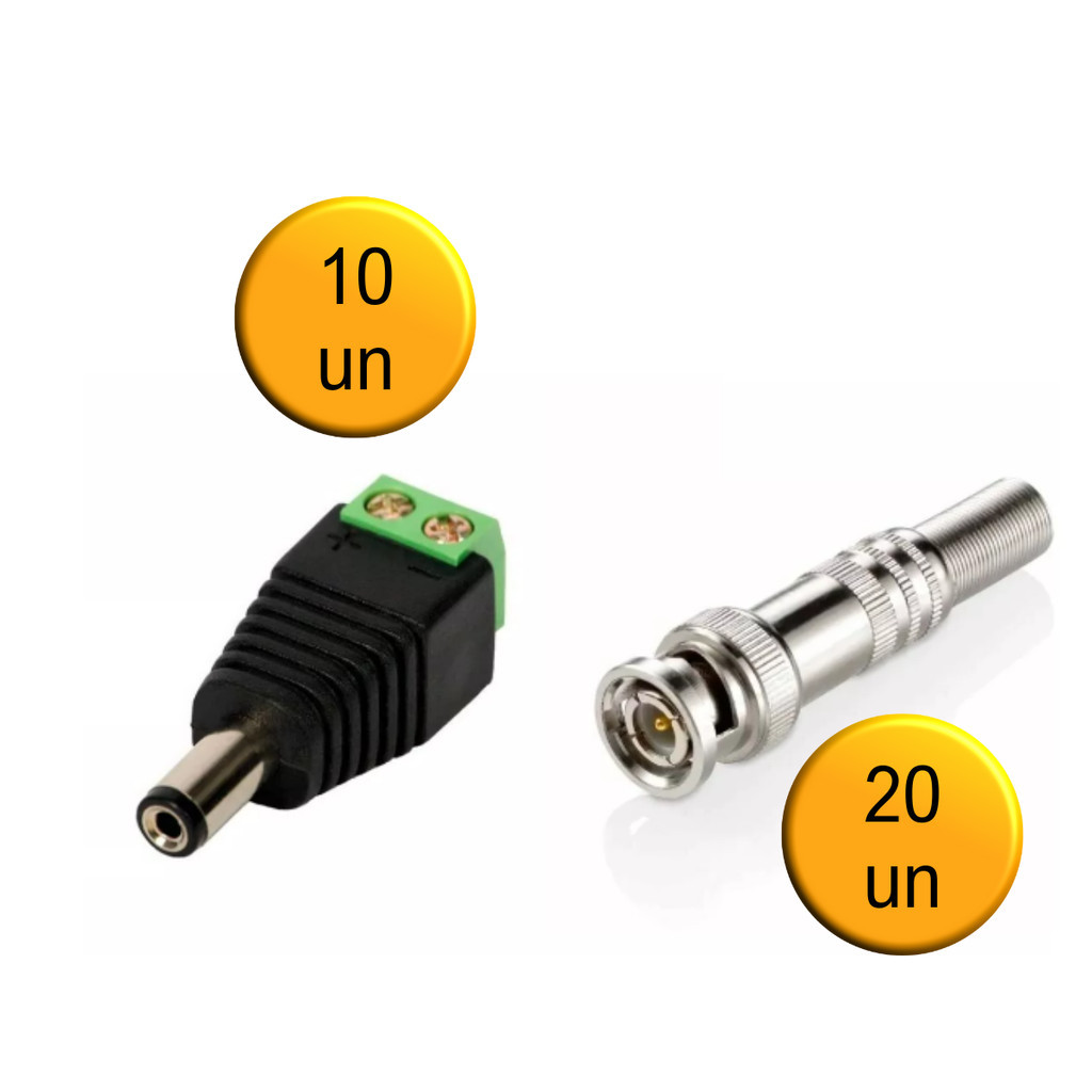 Kit 10 Conector P4 Mach + 20 Bnc Mola Cftv Cameras Segurança