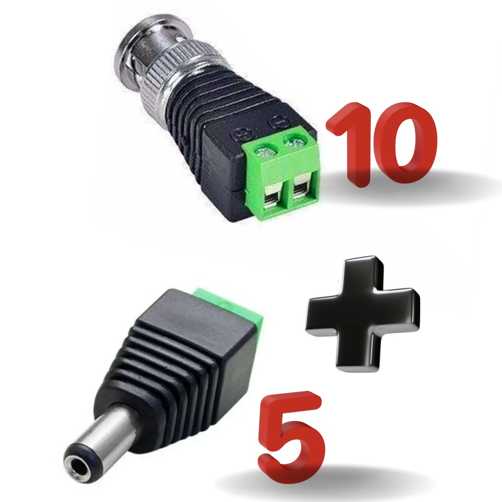 Kit 10 Conectores BNC Macho C/ Borne + 5 Plug P4 Macho