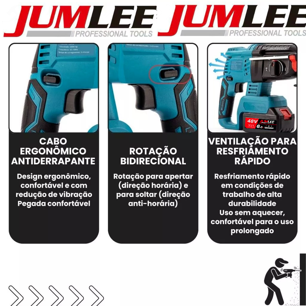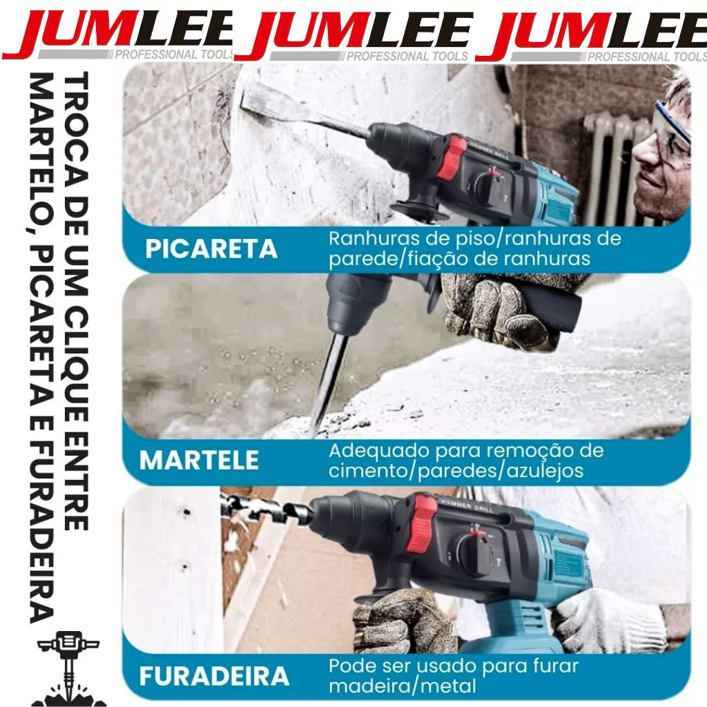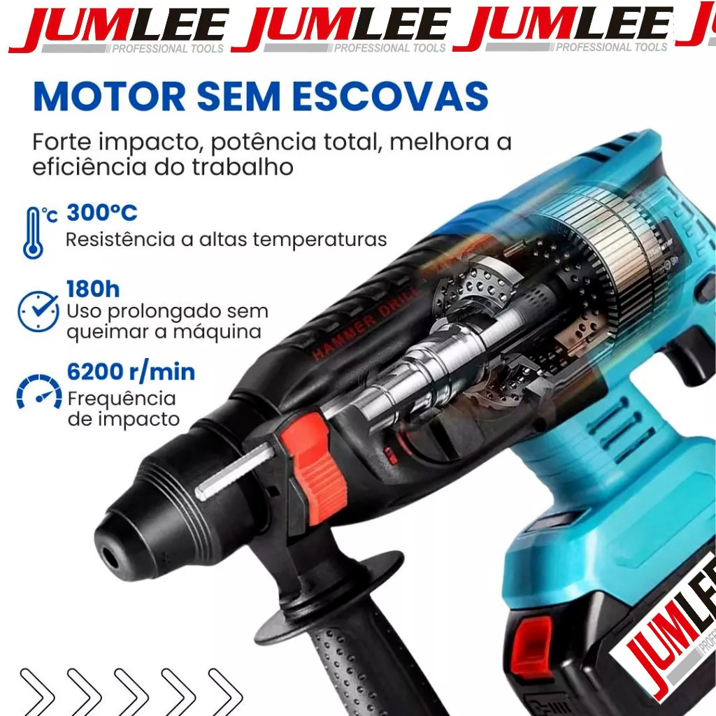 Martelete Furadeira rompedor eletrico profissional 1500w Martelo de impacto Rompedor Com 2 Baterias