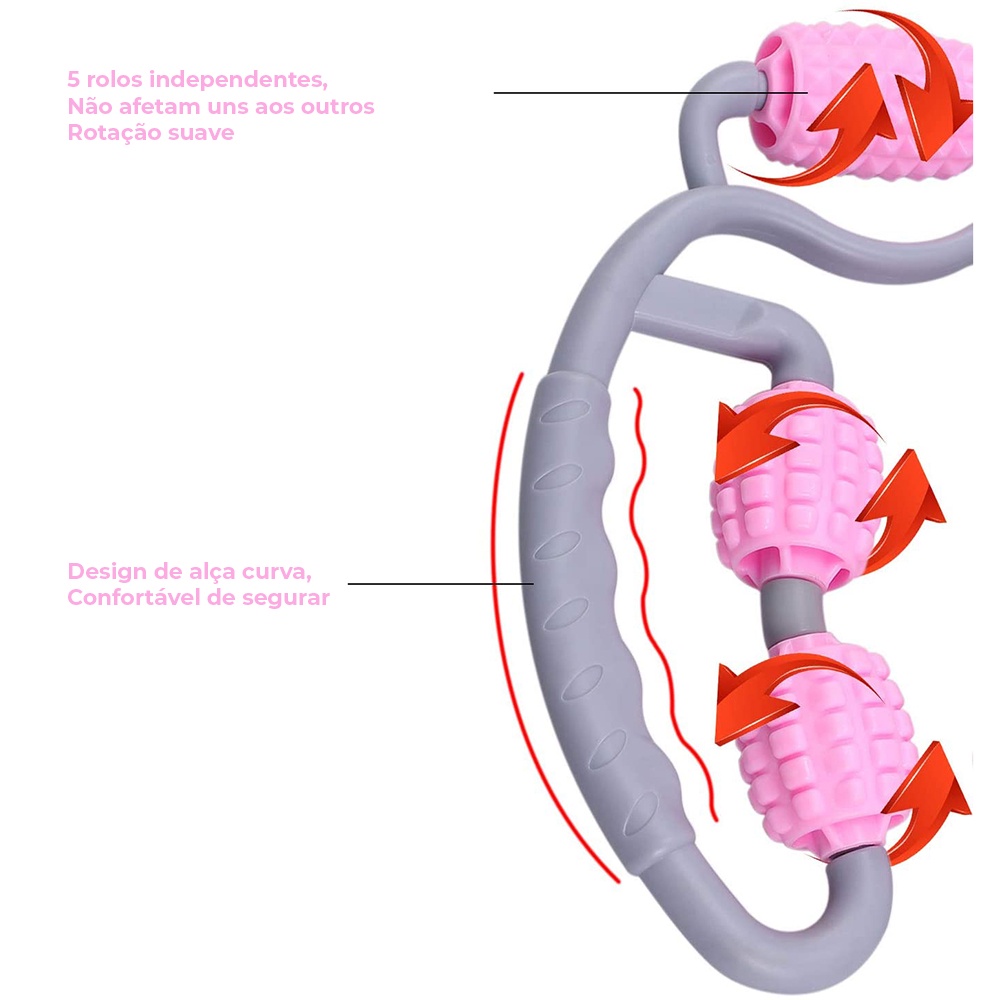 Massageador Abdômen Coxas Pescoço Braços Terapia Rolo Rosa Roxo Maxboost