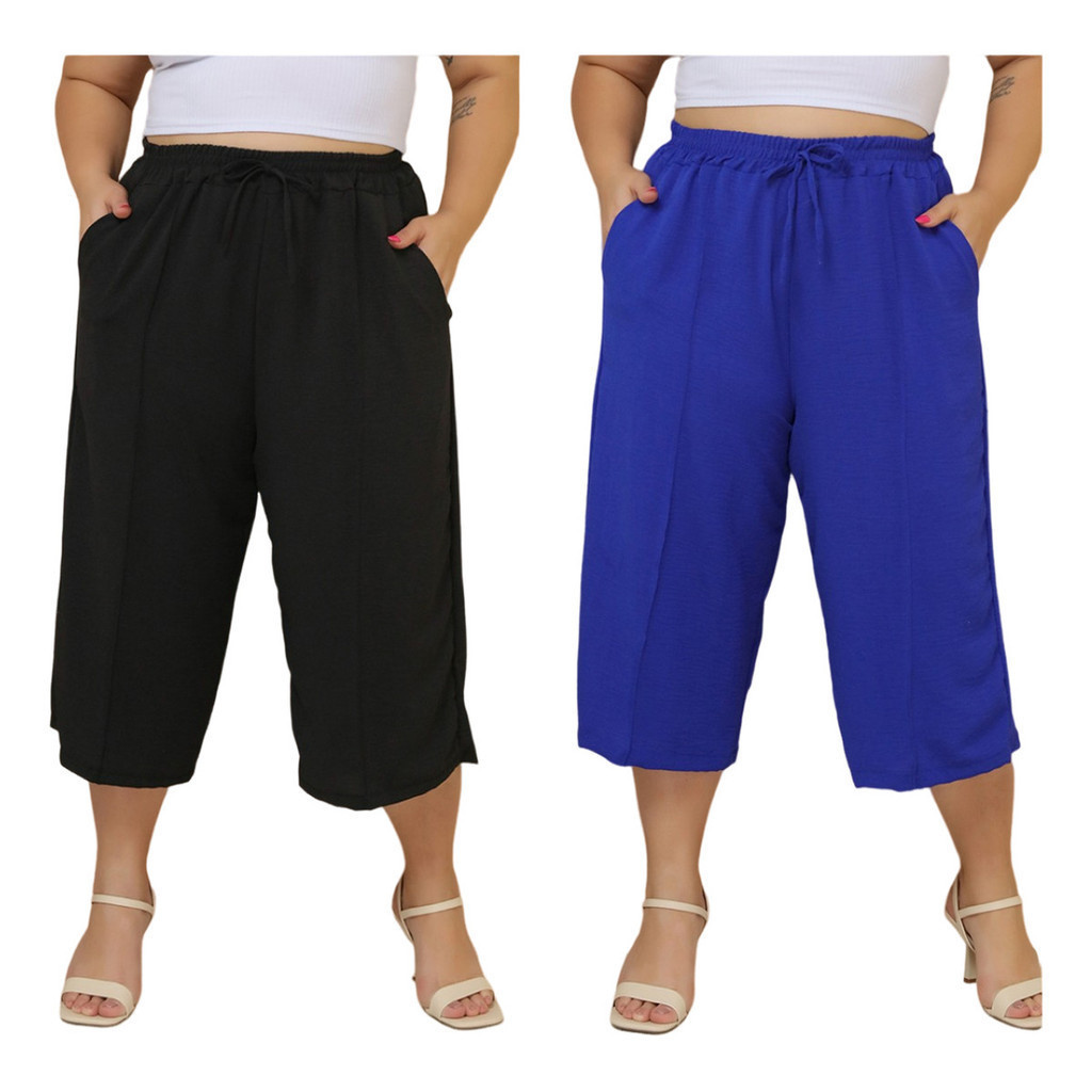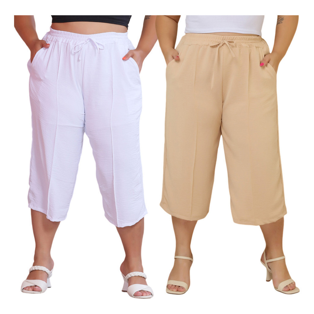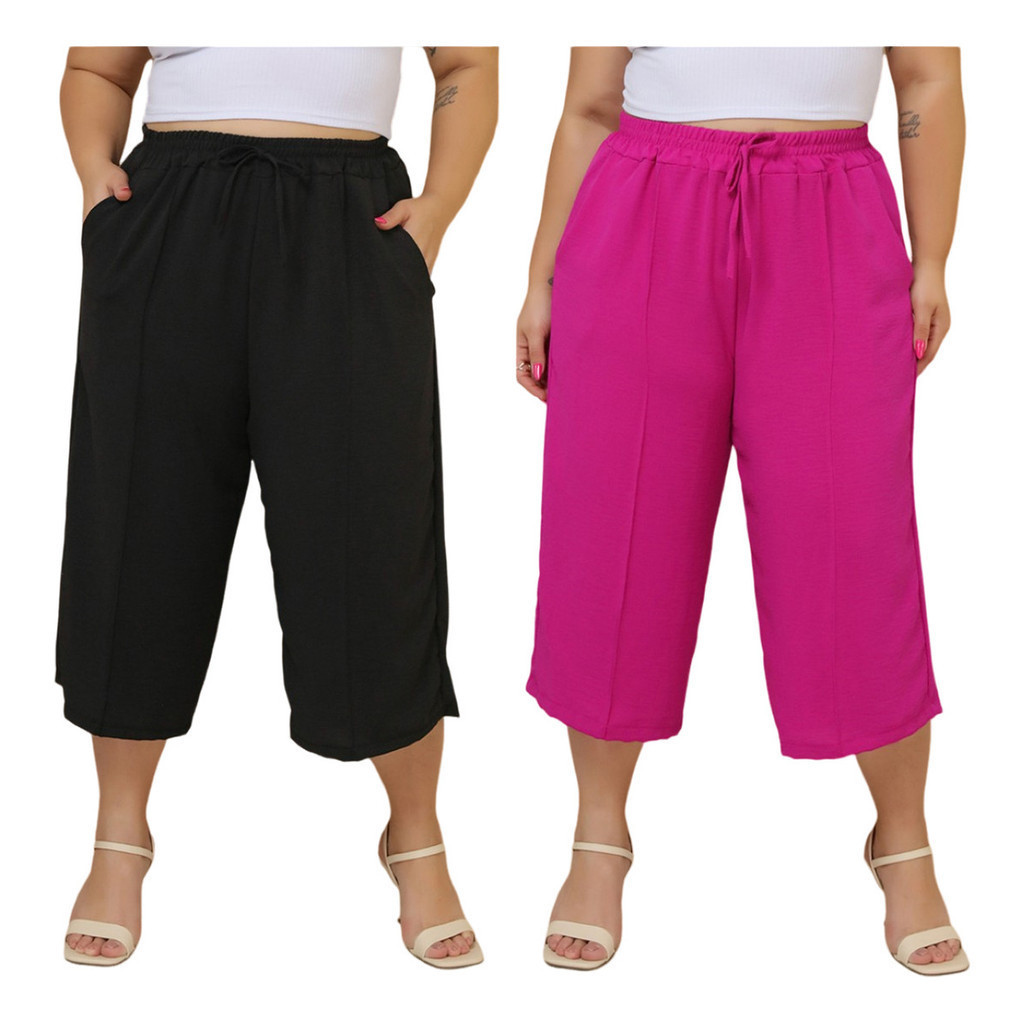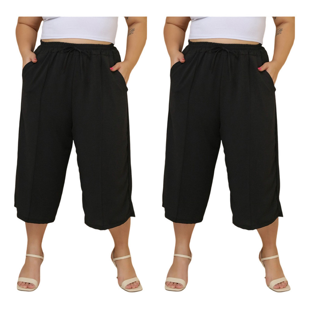 Kit 2 Pçs Calça Feminina Pancourt Em Tecido Duna Com Elastica Plus Size