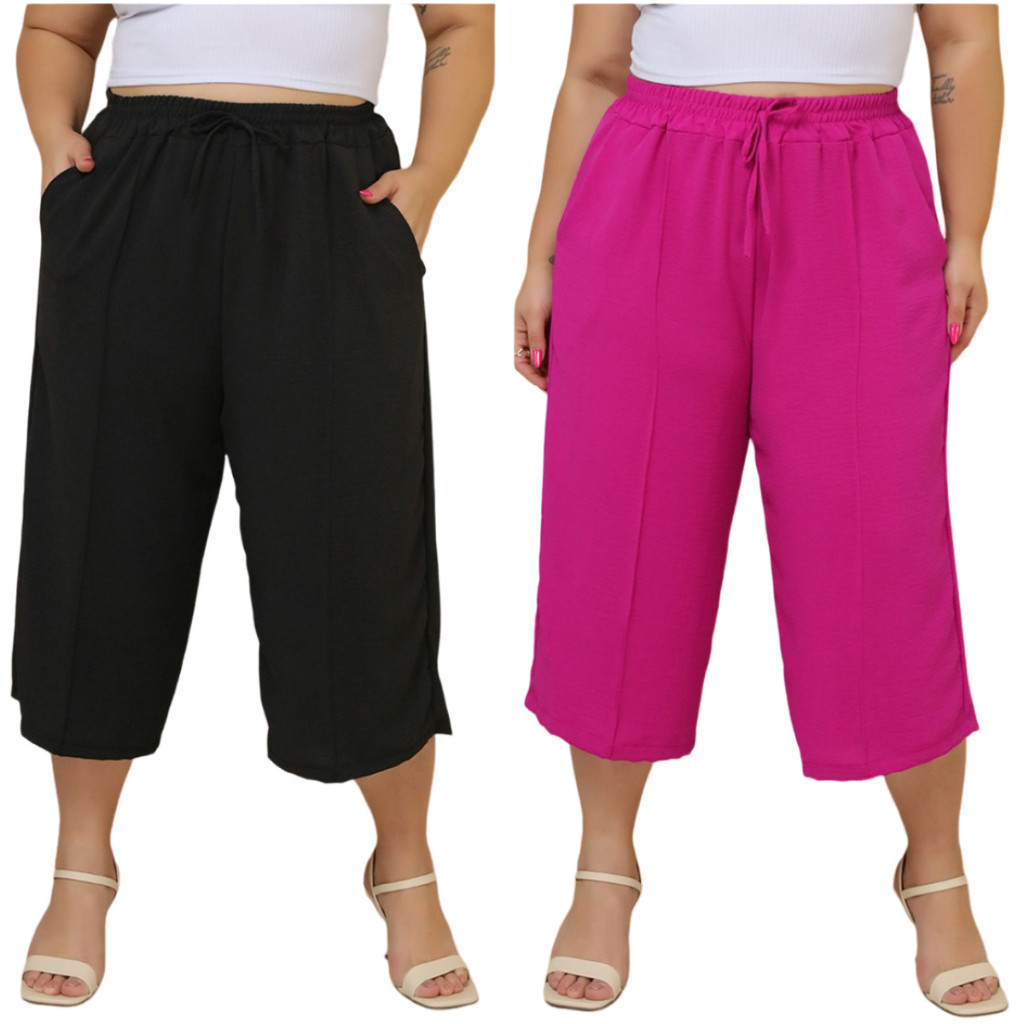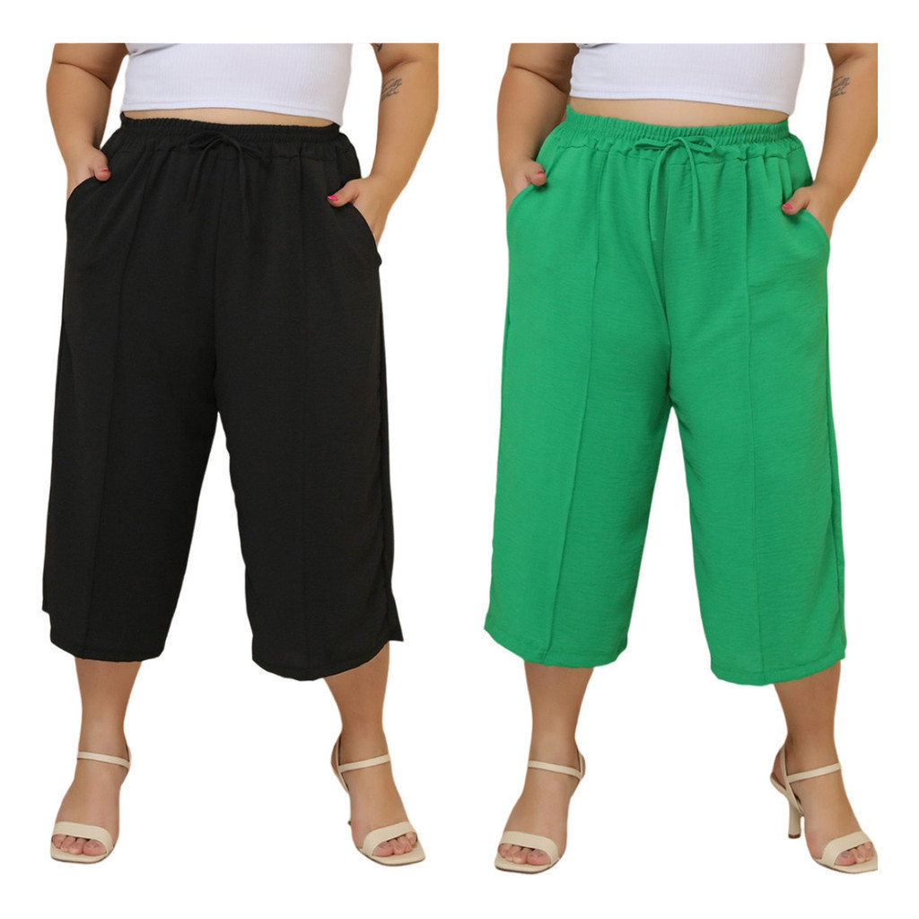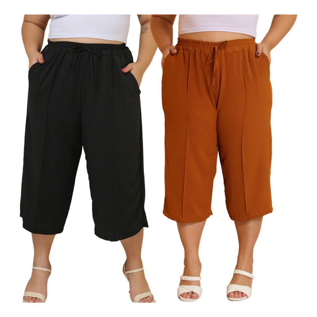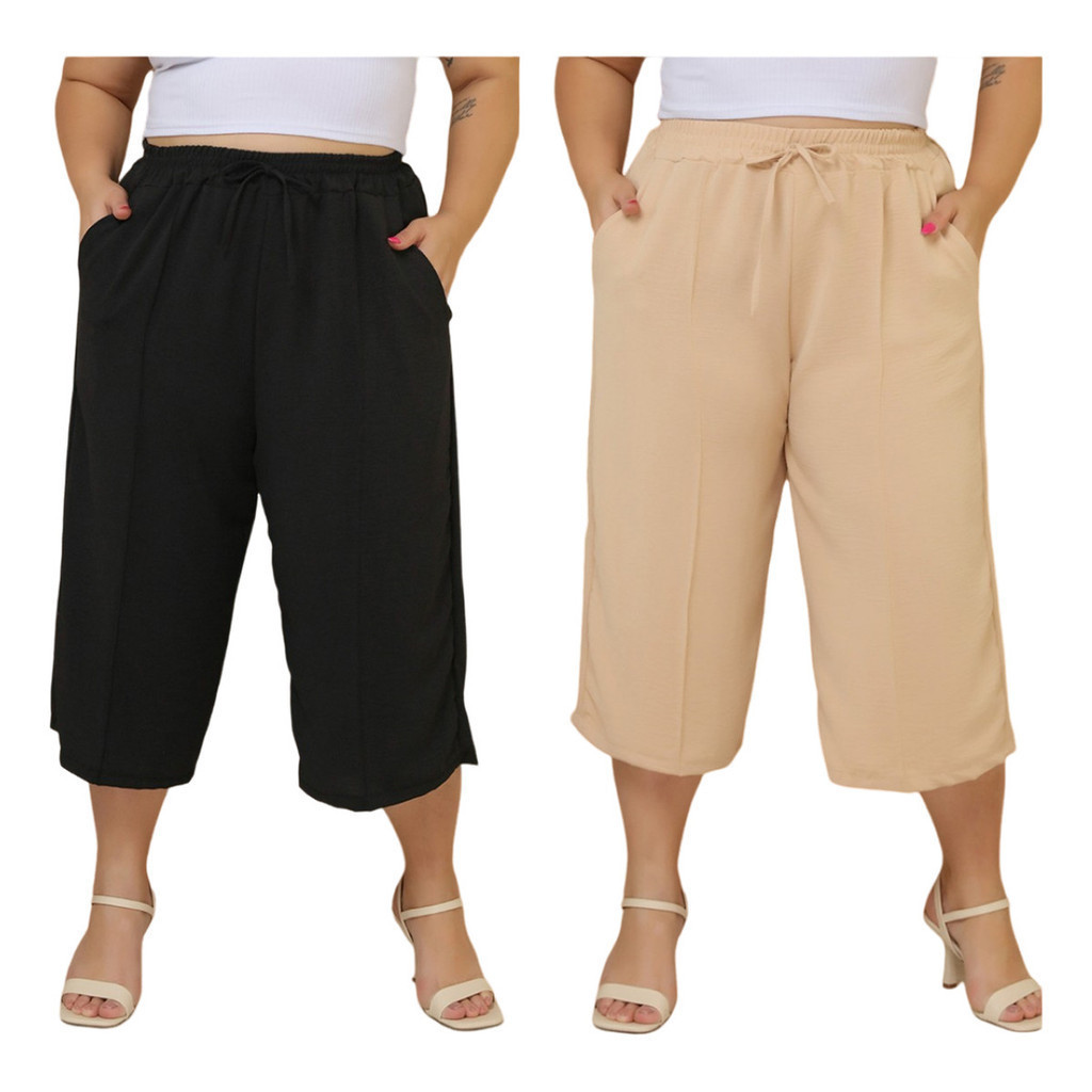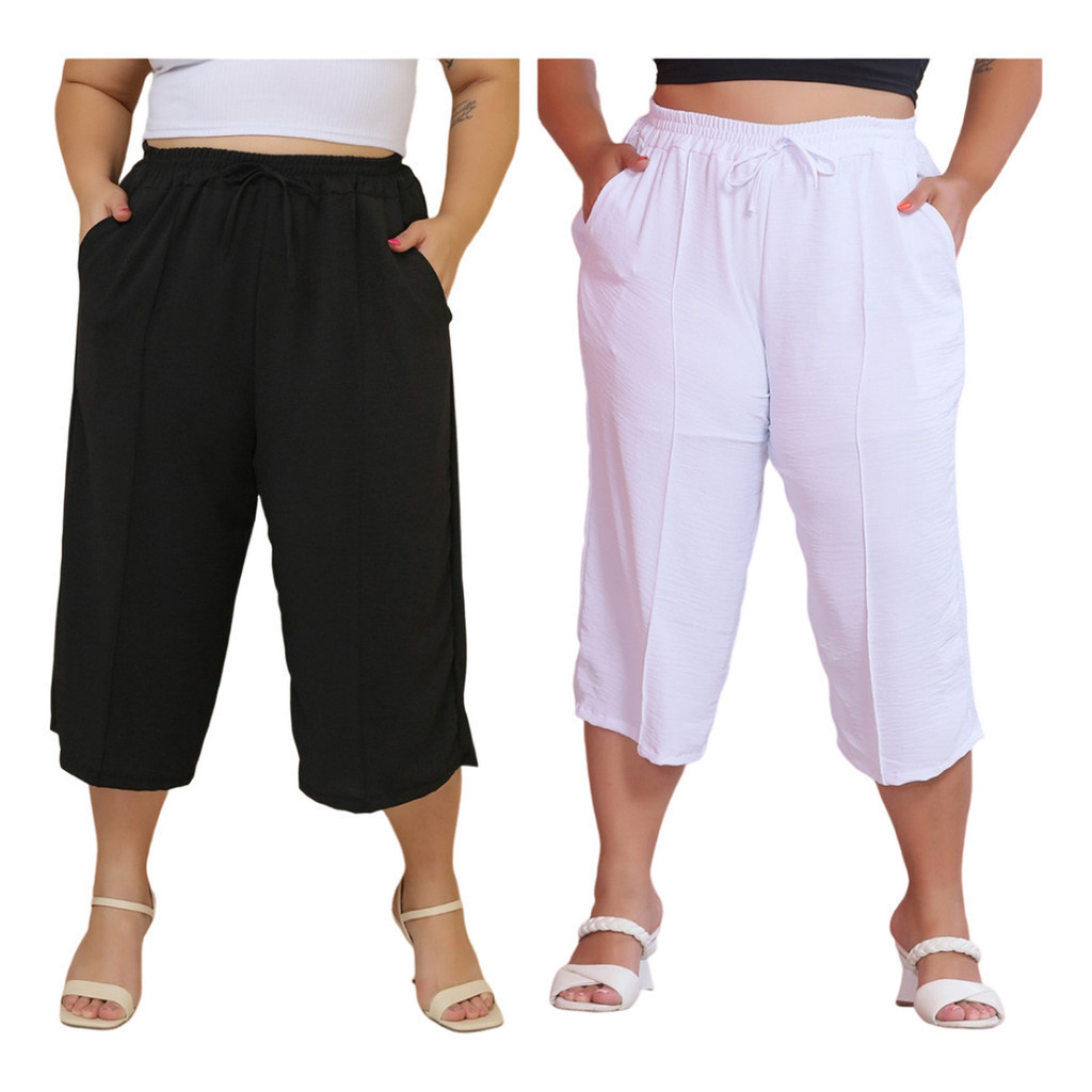 Kit 2 Pçs Calça Feminina Pancourt Em Tecido Duna Com Elastica Plus Size