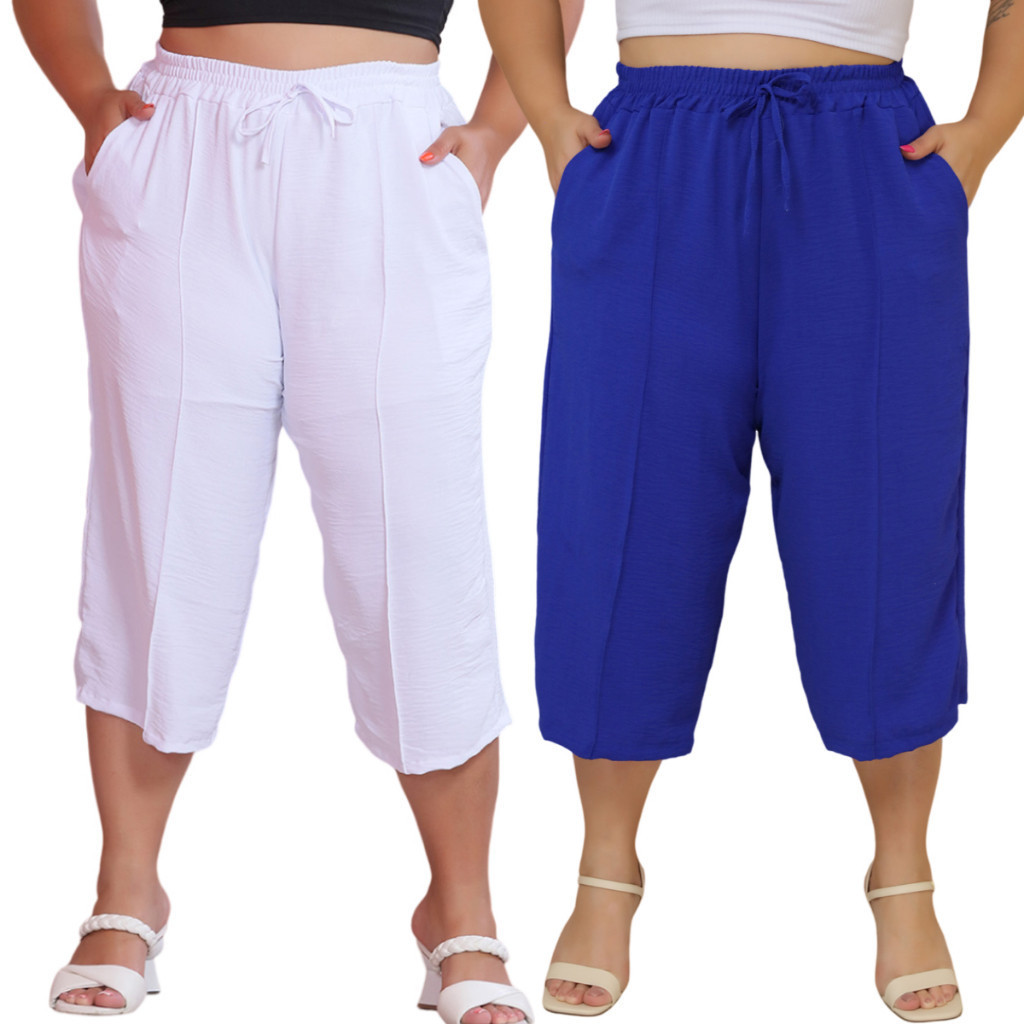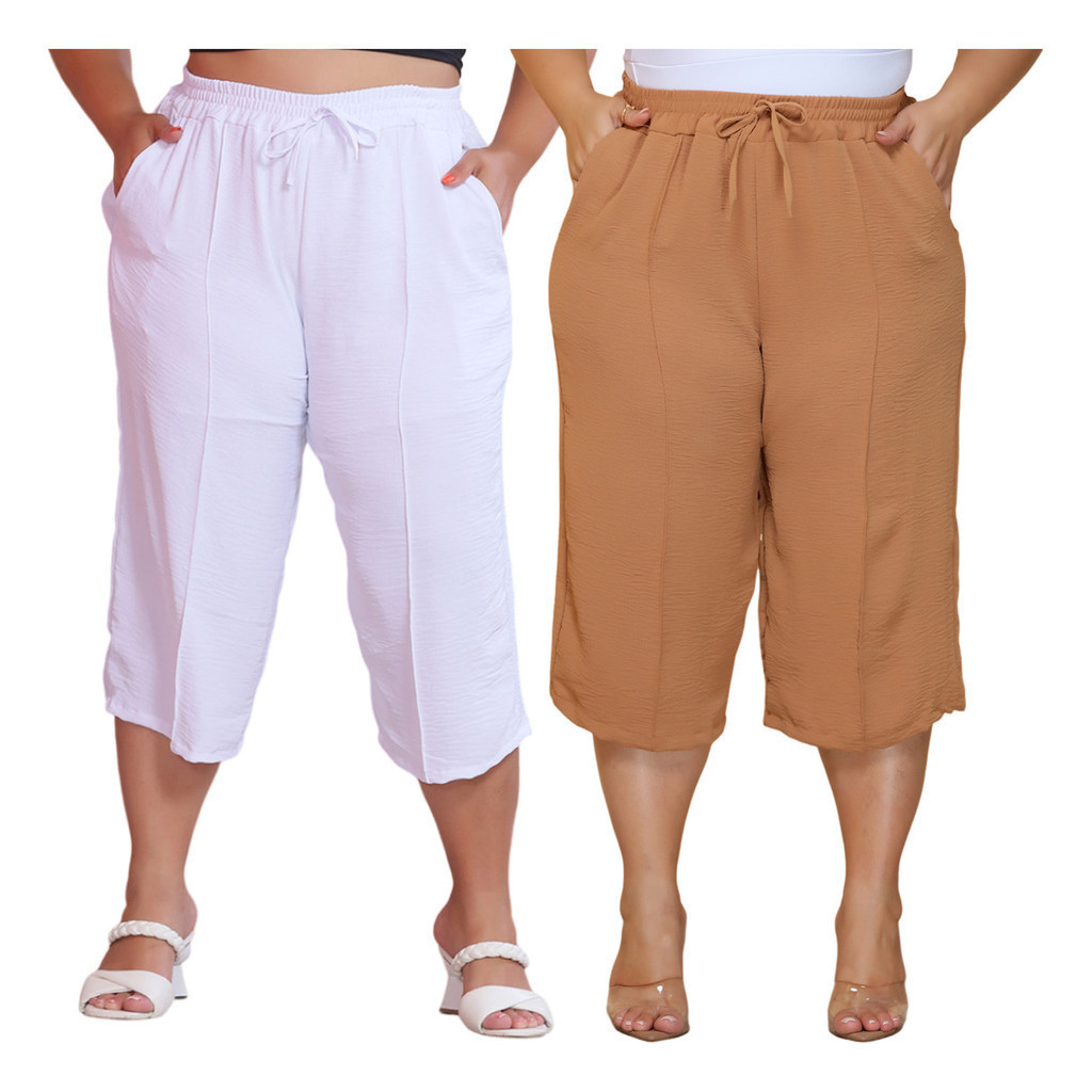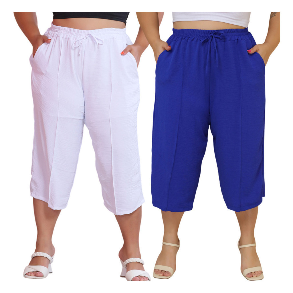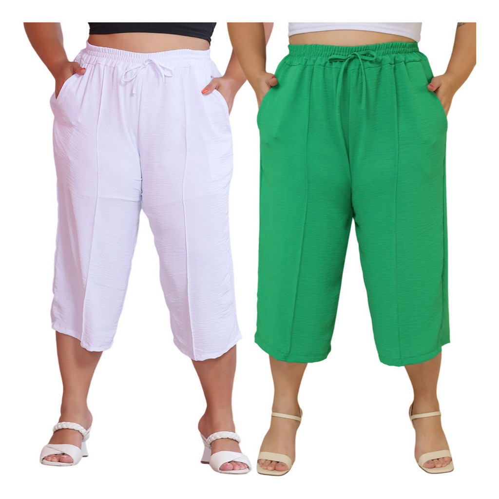 Kit 2 Pçs Calça Feminina Pancourt Em Tecido Duna Com Elastica Plus Size