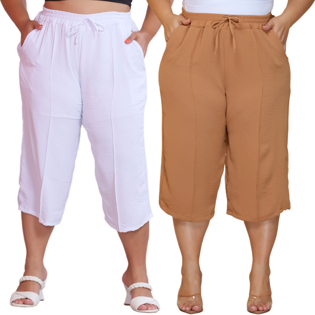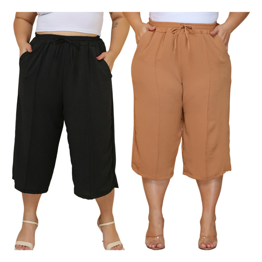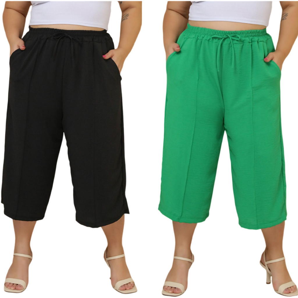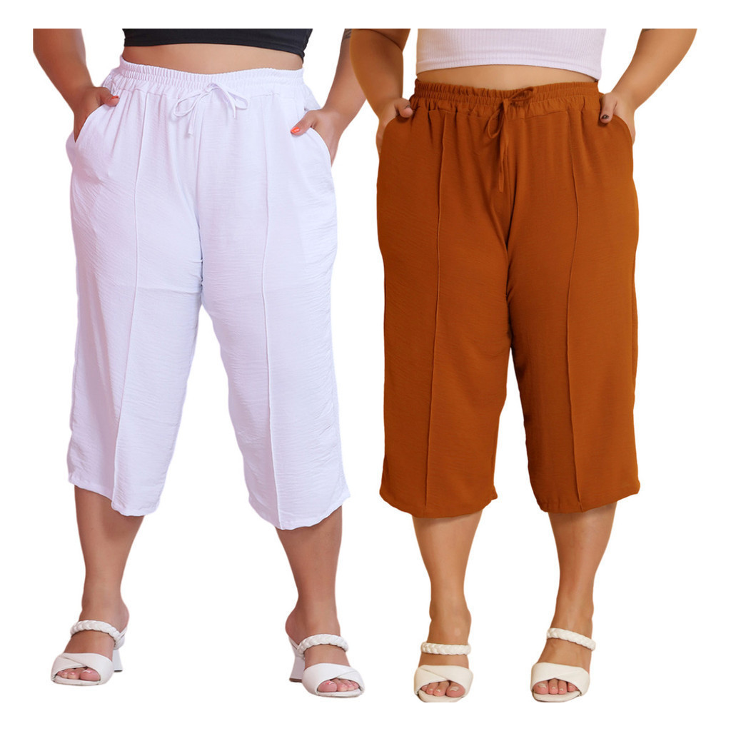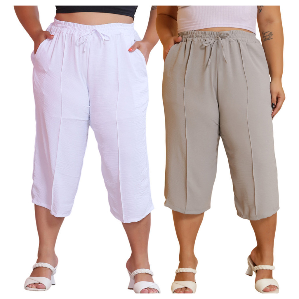 Kit 2 Pçs Calça Feminina Pancourt Em Tecido Duna Com Elastica Plus Size