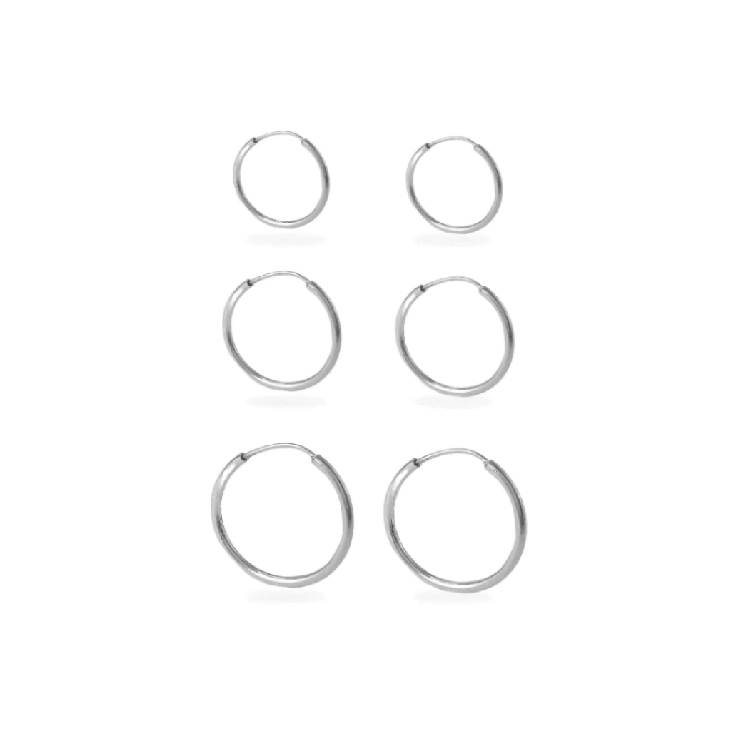 Trio Brincos Argola Redonda | Prata 925 Legítima | Kit Fio Liso