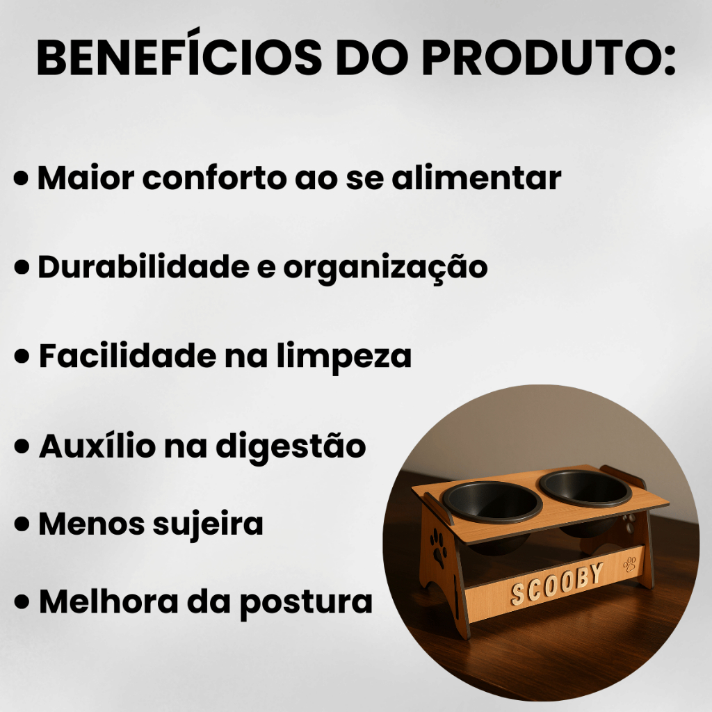 Bebedouro Comedouro Elevado PERSONALIZADO para Gato e Cachorro MDF - Tigelas Plásticas