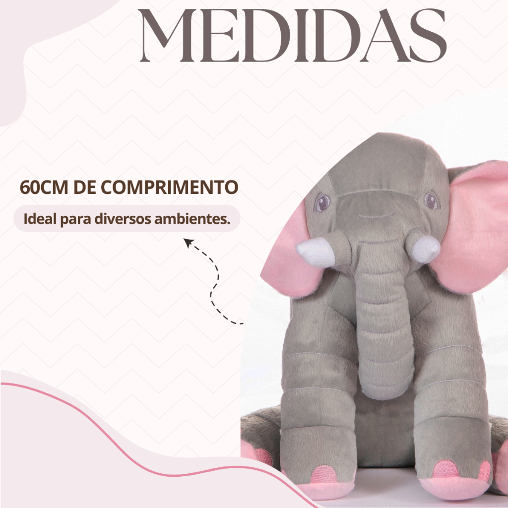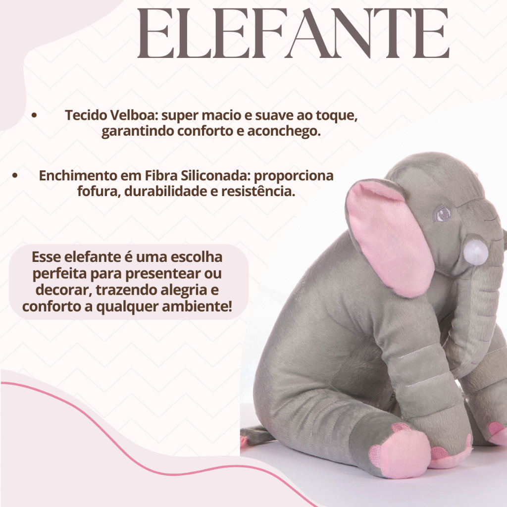 Almofada Elefante Pelúcia Cinza/Rosa/Azul 60cm