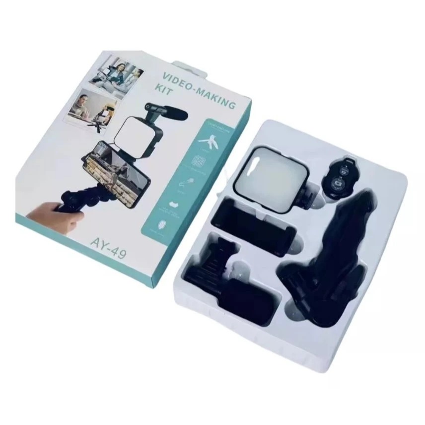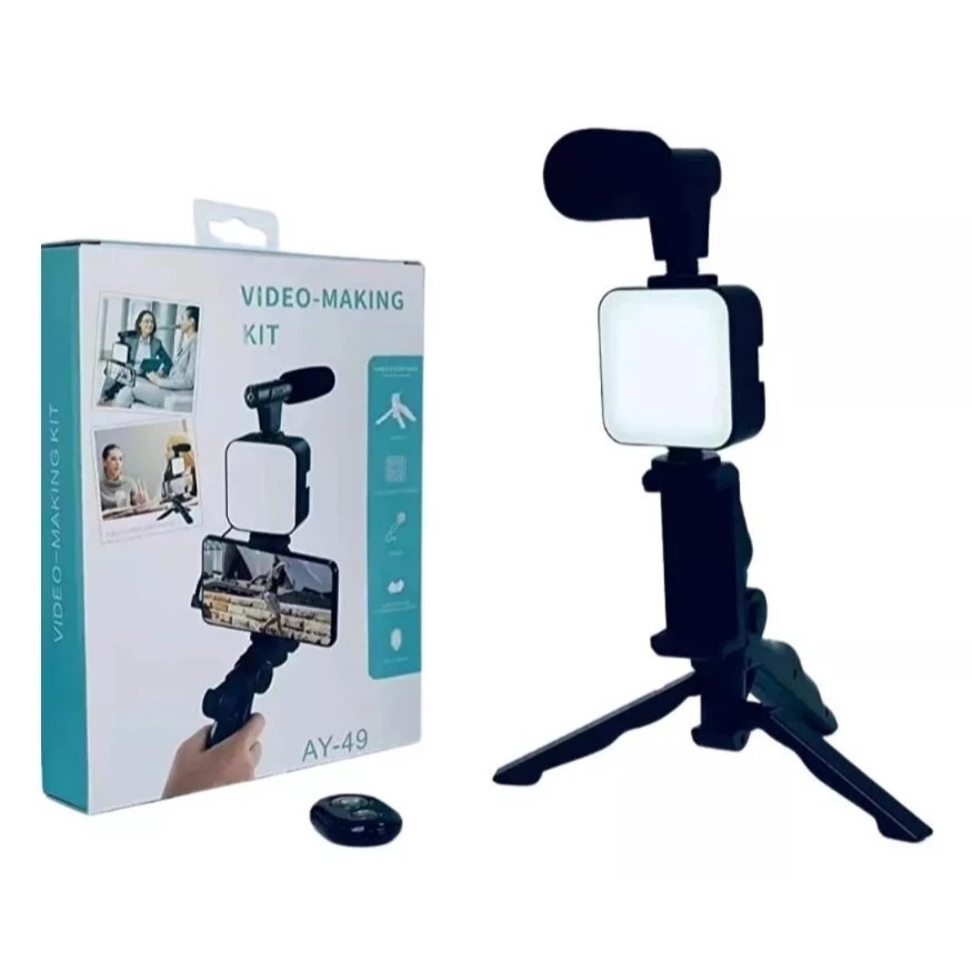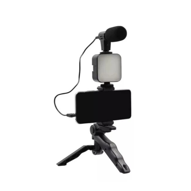 Kit Completo para Streaming de Vlogs e Selfies com Microfone e Luz LED - Preto