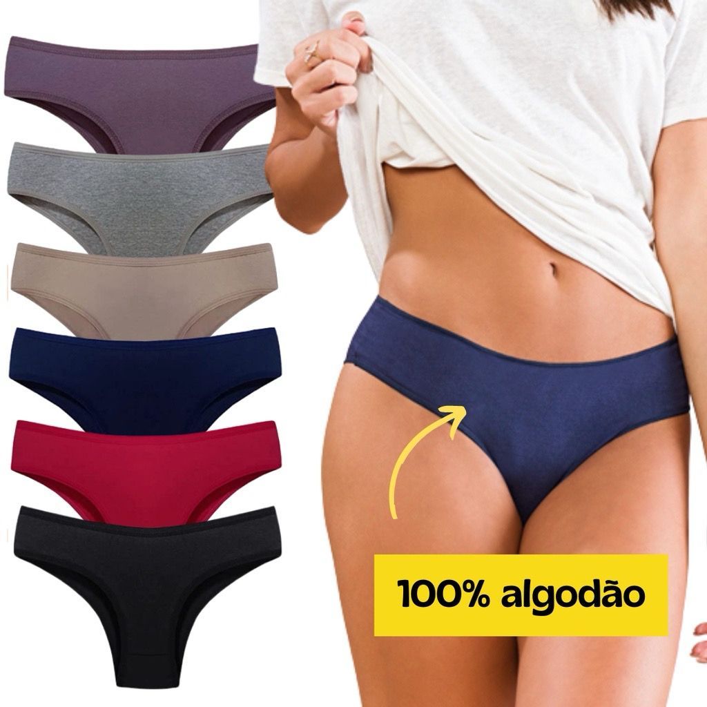 Kit 10 Calcinhas Femininas de Algodão Cotton Adulto Lisas