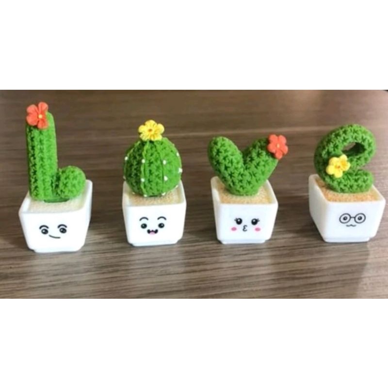 Kit 4 Mini Vasinhos Suculentas Love Decoração Artificial Miniaturas
