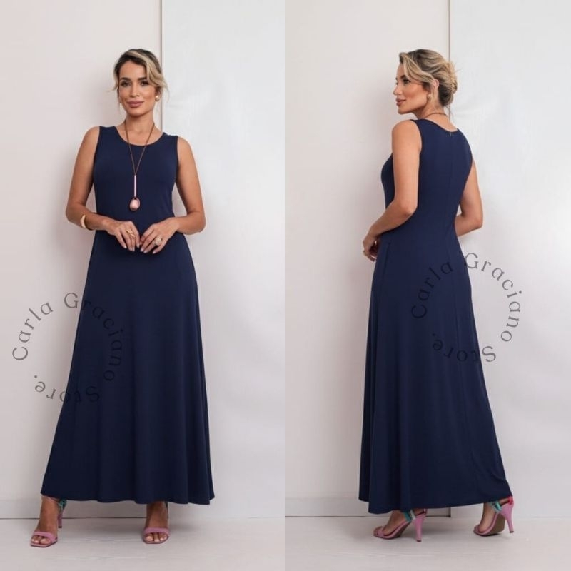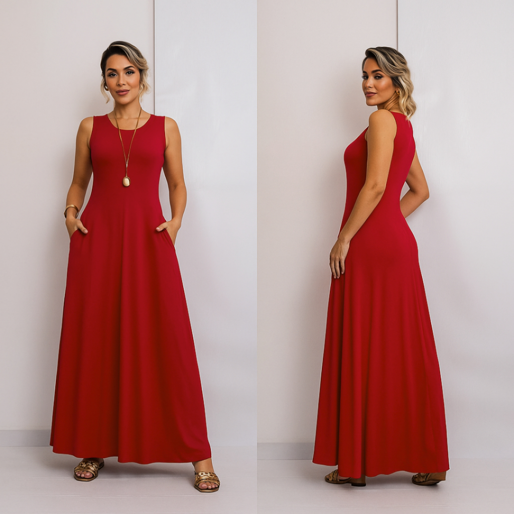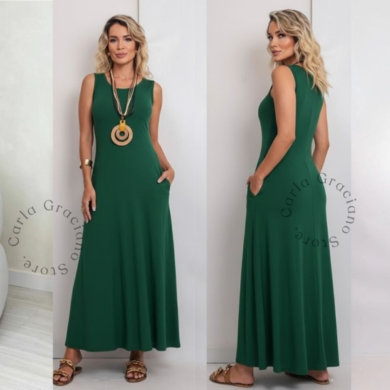 Vestido Longuete Feminino Soltinho Casual Malha Leve Confortável com Bolsos 506