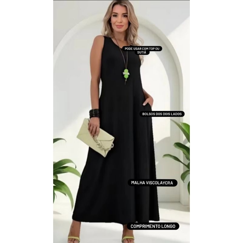 Vestido Feminino Longuete Casual Malha Soltinho Elegante Verão Outono Inverno 506