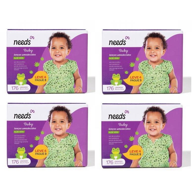 Kit 704 Lenço Umedecido Needs Baby Aloe Vera com 176 unidades