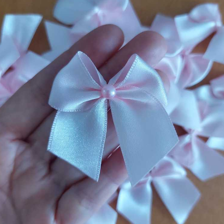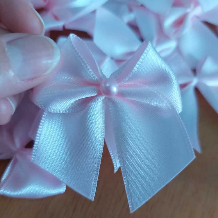 Laço de Cetim nº5 Rosa Claro c/ Pérola 22mm – Personalizado p/ Casamento, Presente, Lembrança