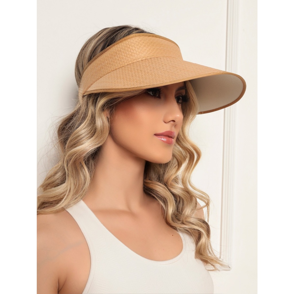 Viseira Feminina Casual Chapéu Palha viseira Verão 2025 Praia caminhada ciclismo