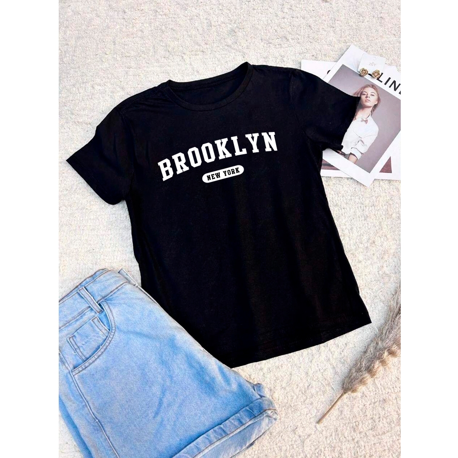 Camiseta Feminina Brooklyn New York Corte Feminino Baby Luck Básica Blusa Feminina