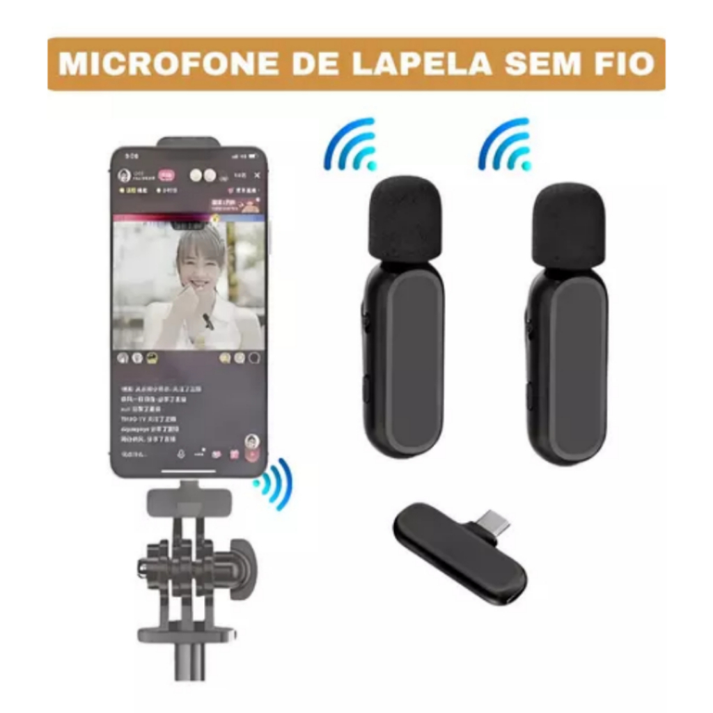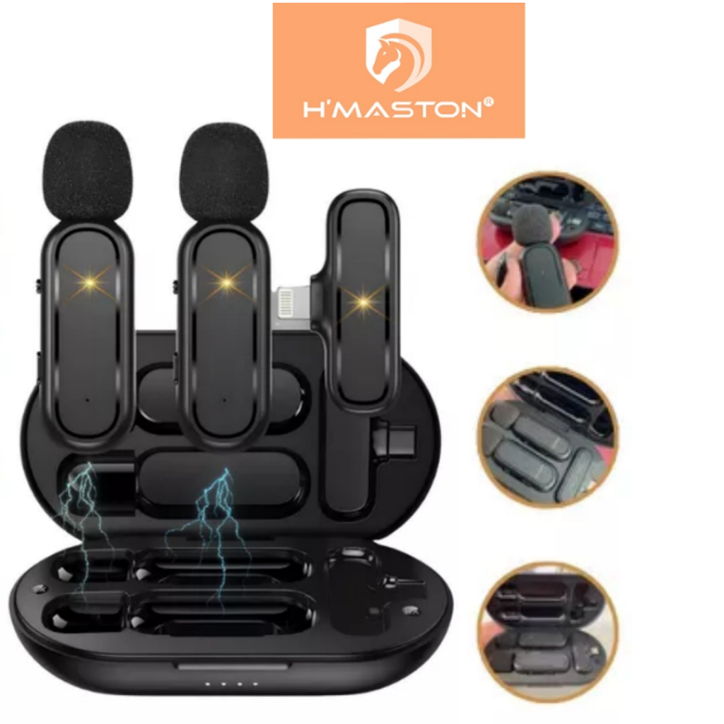 H'maston Microfone MK07/08 Sem Fio Duplo Lapela Vlog Compatível Tipo C Direct Selling Microfone de Lapela