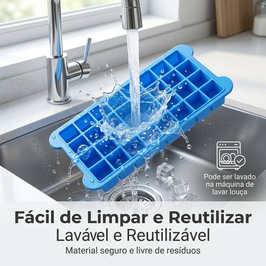 Kits Formas de Gelo Silicone Com Tampa Rígida Flexível Fundo Retangular 36 Cubos Multiuso Lavável