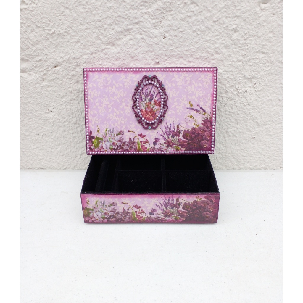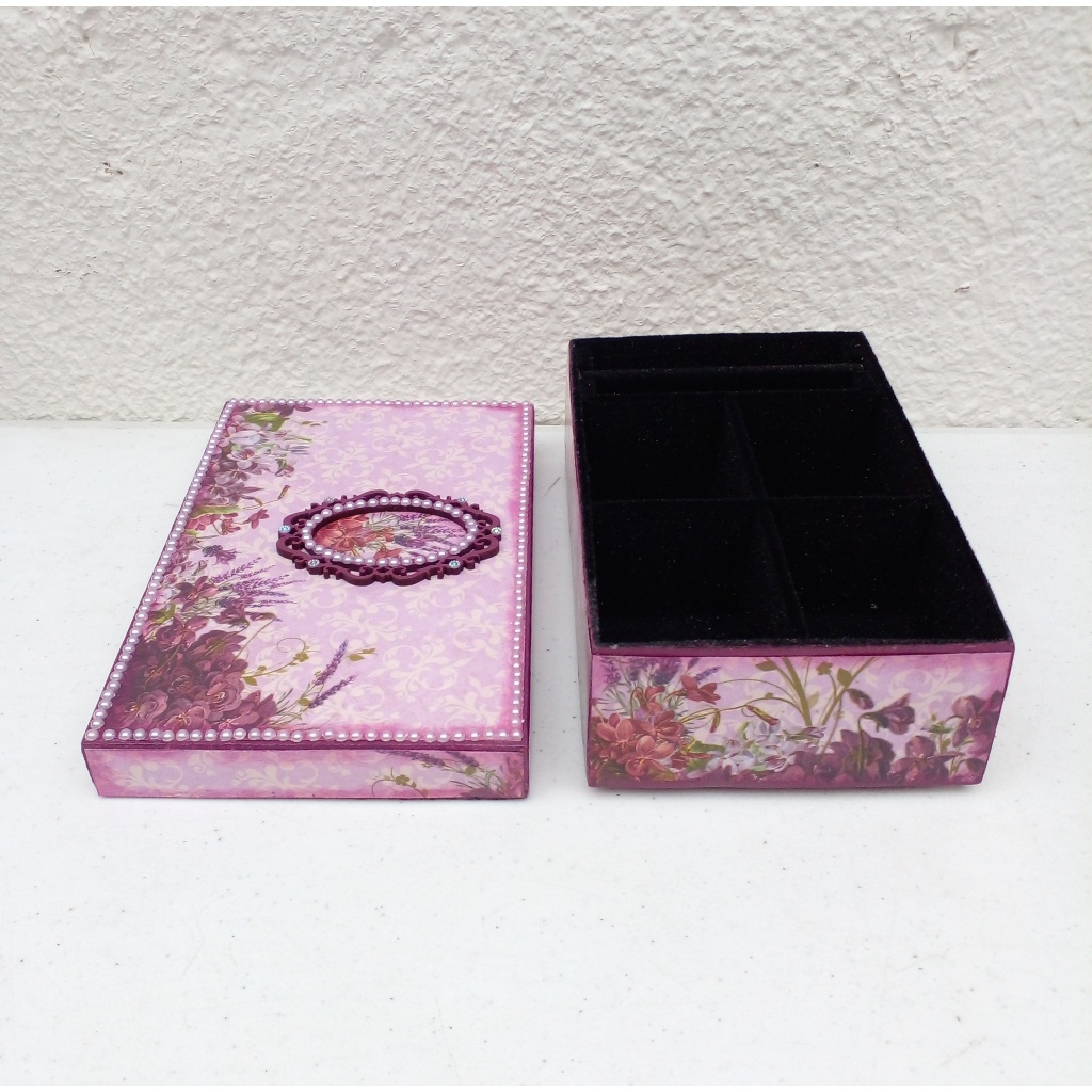 Organizador Mdf Porta Joia Flocado Com Aneleira Flores