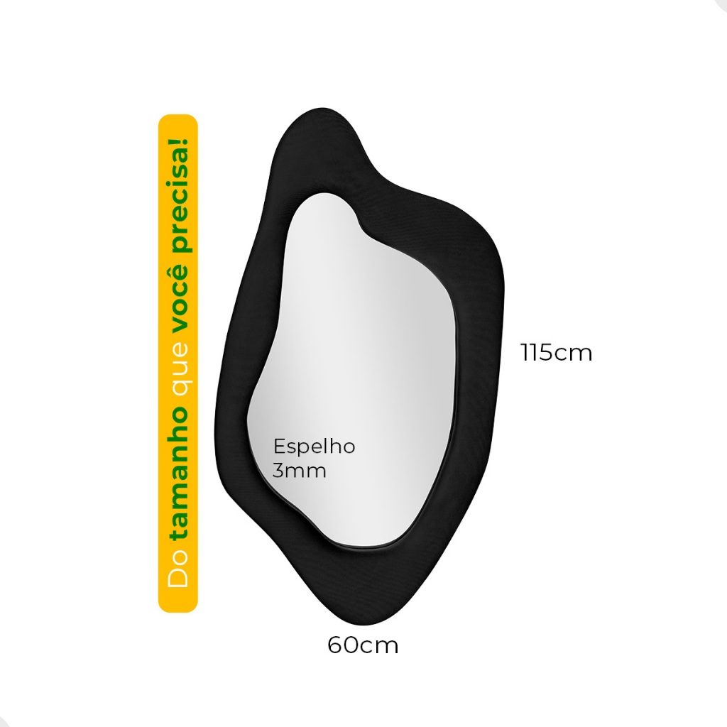 Espelho de Parede Grande Veludo Orgânico Premium Espelho Moderno Sala Banheiro 115x60cm Hera