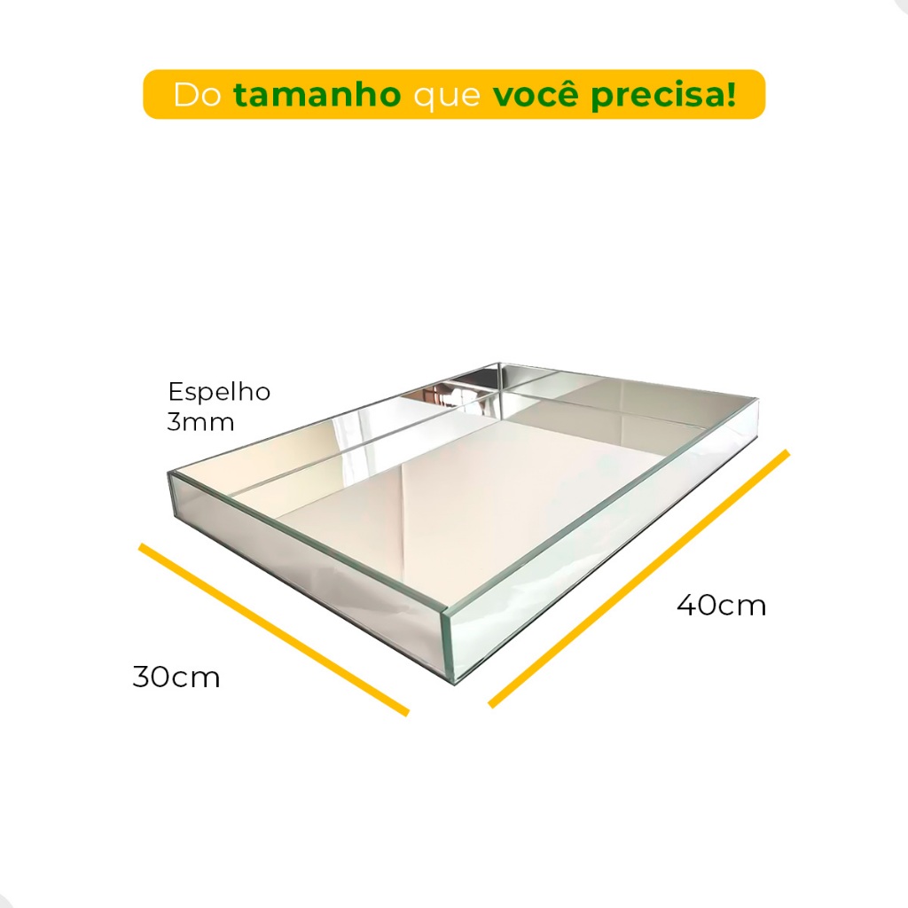 Bandeja Espelhada Retangular Decorativa De Mesa Grande De Servir Festas, Escritório, Café, Decoração