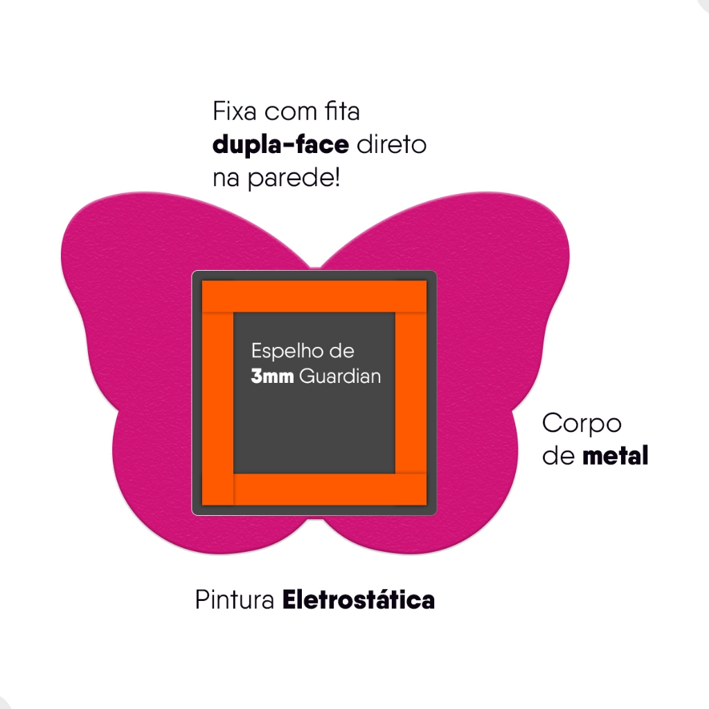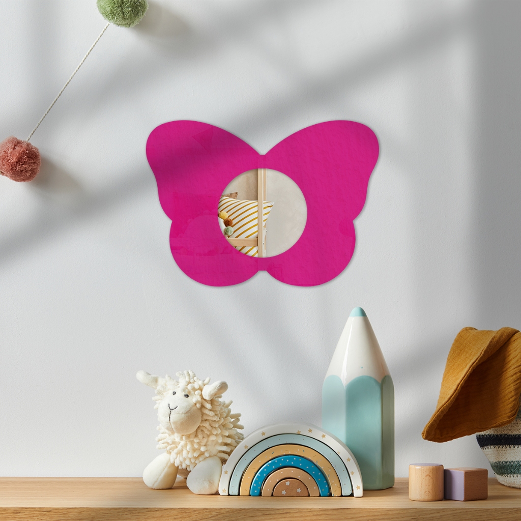 Espelho Infantil de Borboleta Rosa 35x25cm Quarto de Criança Decoração Infantil Colorido Animais
