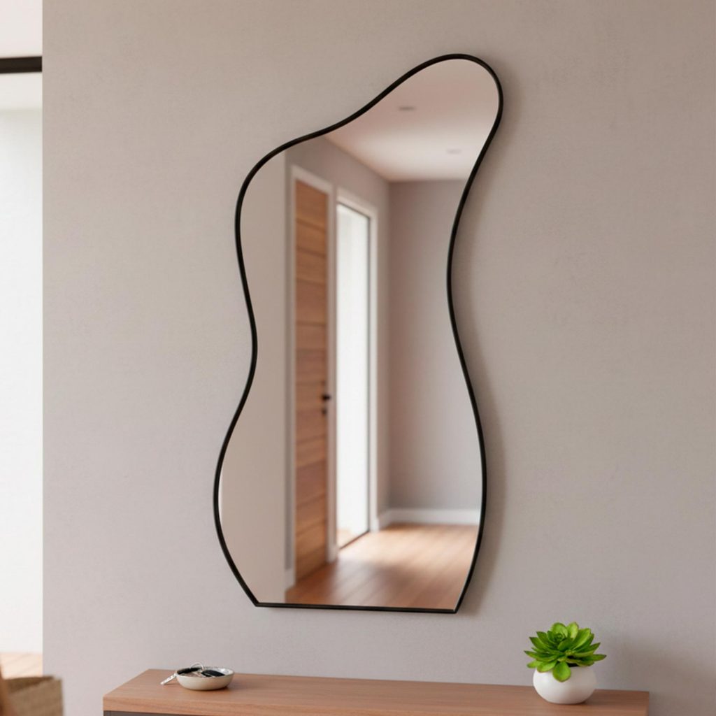 Espelho Grande Moldura em Couro 3cm de Chão Corpo Inteiro 110x60cm - Mod. Curves