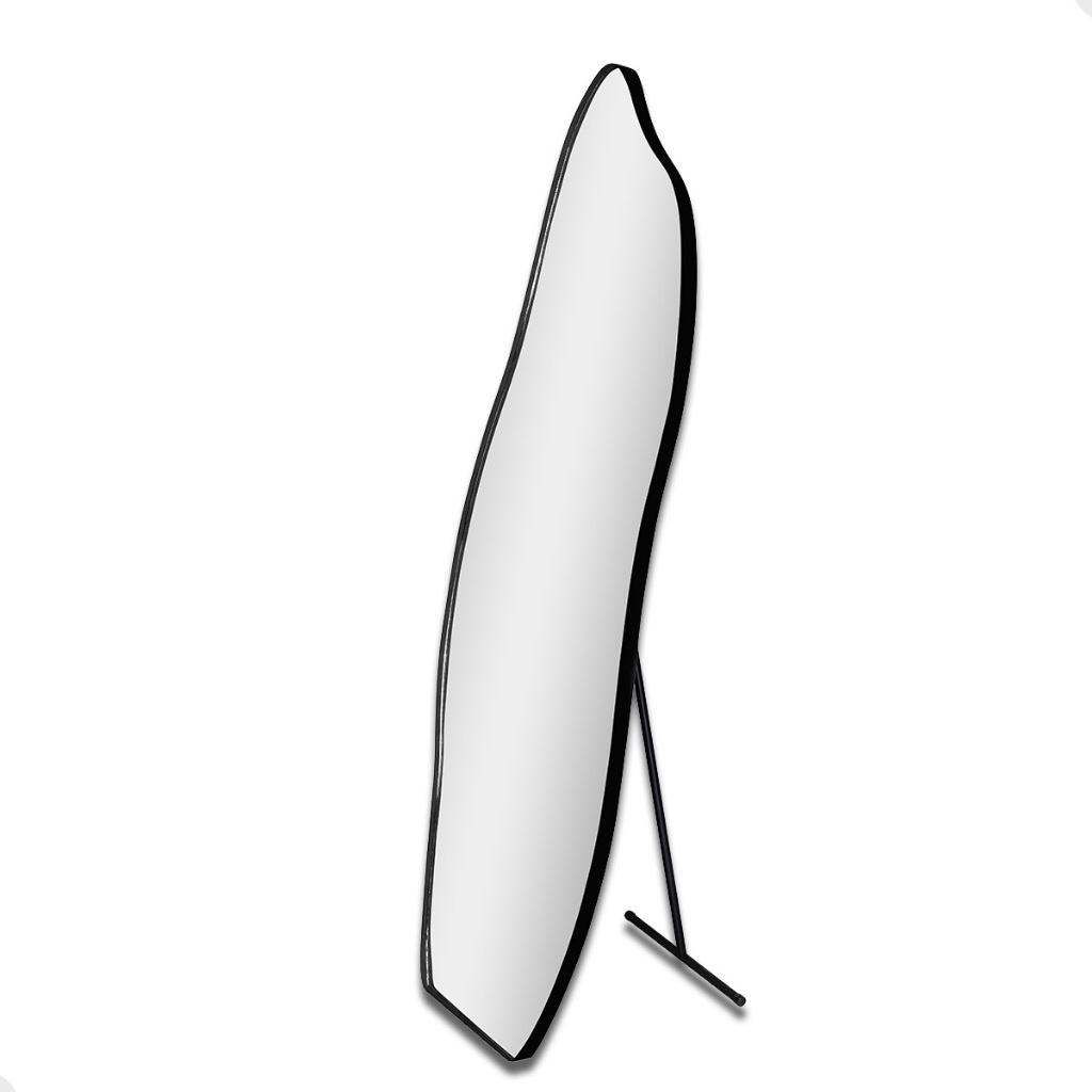 Espelho de Chão Flame Grande 150x50cm com Formato Orgânico e Acabamento Sofisticado em Couro