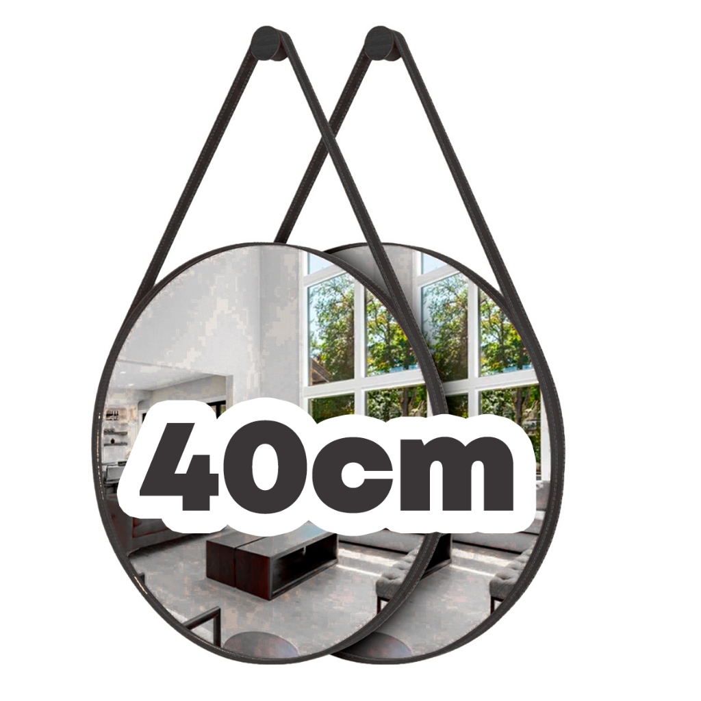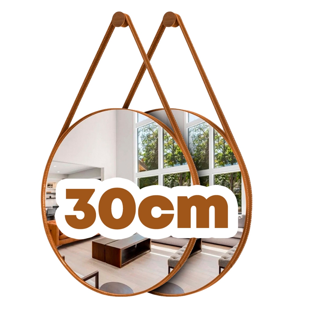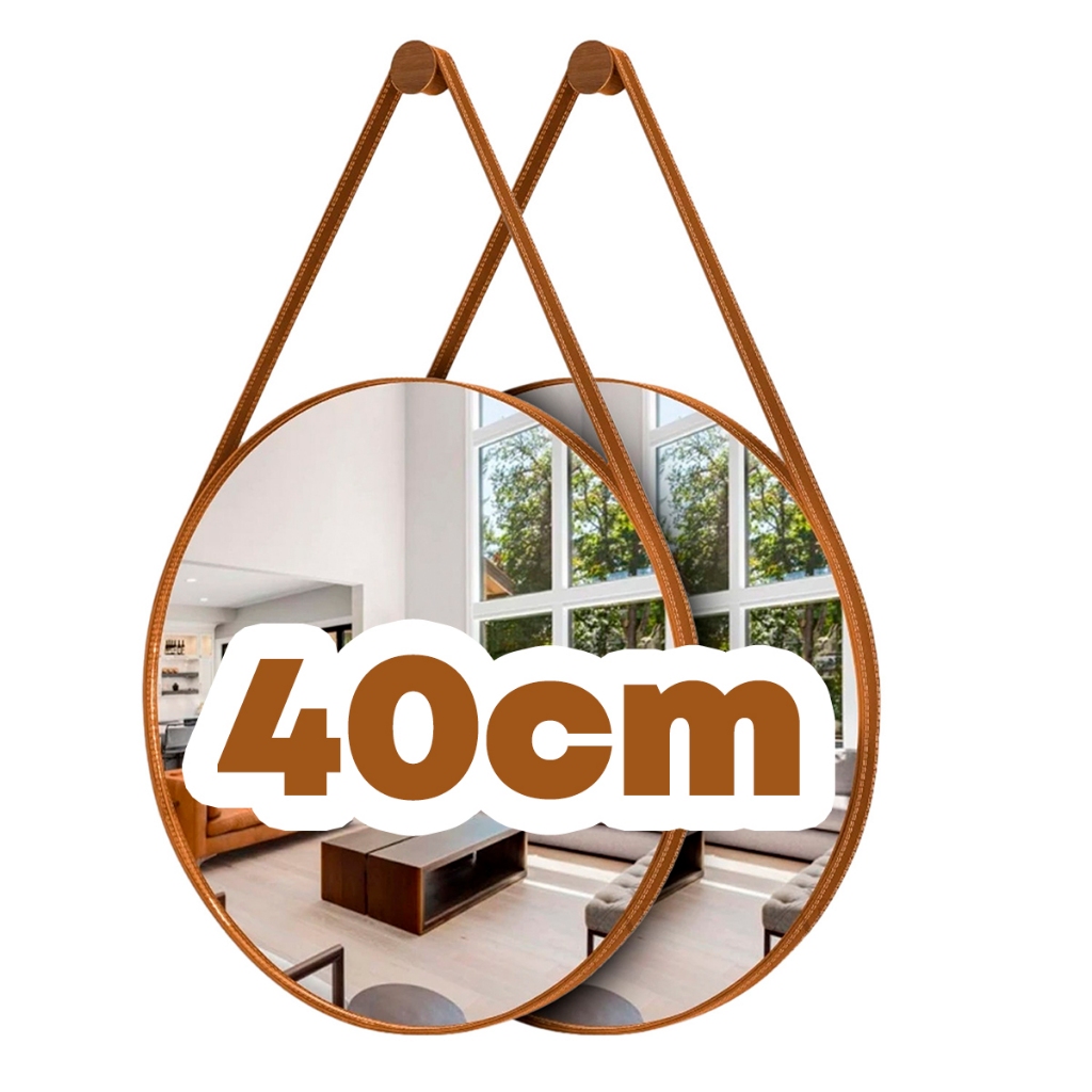 Espelho Adnet Decorativo Redondo Alça Couro Tamanhos e Cores 60cm 50cm 40cm 30cm Suporte Pino Parede