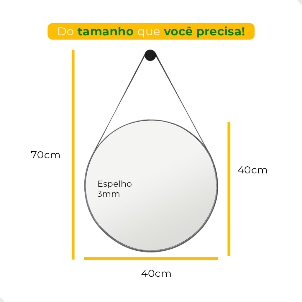 Espelho Redondo do Pinterest Moderno para Banheiro Sala 40cm Alça para Apartamento Banheiro Pequeno