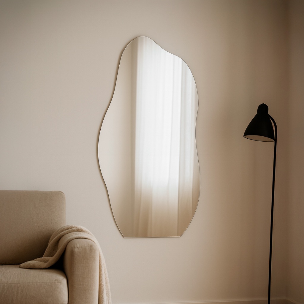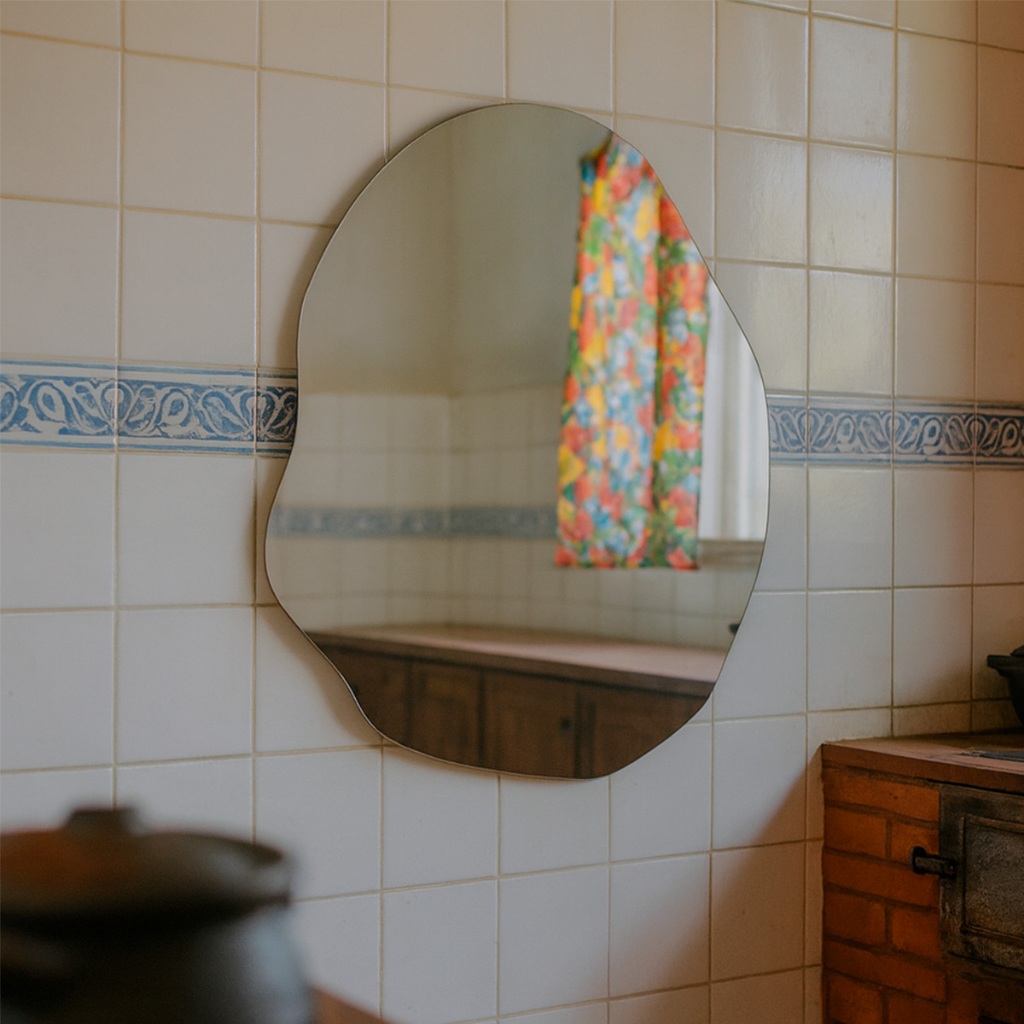 Espelho Orgânico Lapidado 55x75cm Banheiro Hall Entrada Lavabo de Parede Minimalista