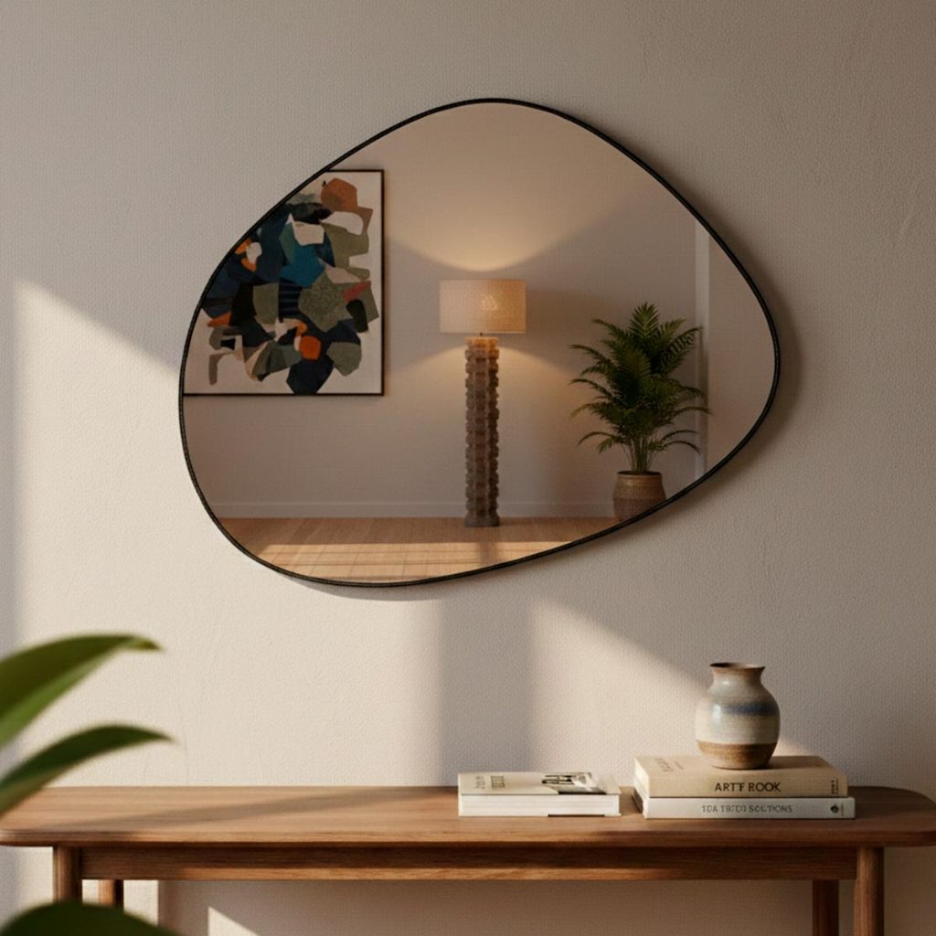 Espelho Orgânico Nuvem 44x64cm - Moldura em Couro Ecológico para Banheiro Sala estilo Pinterest
