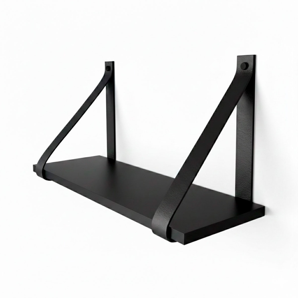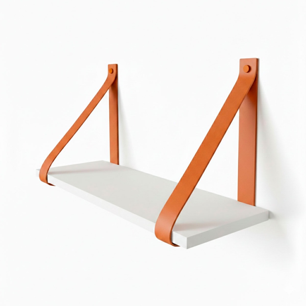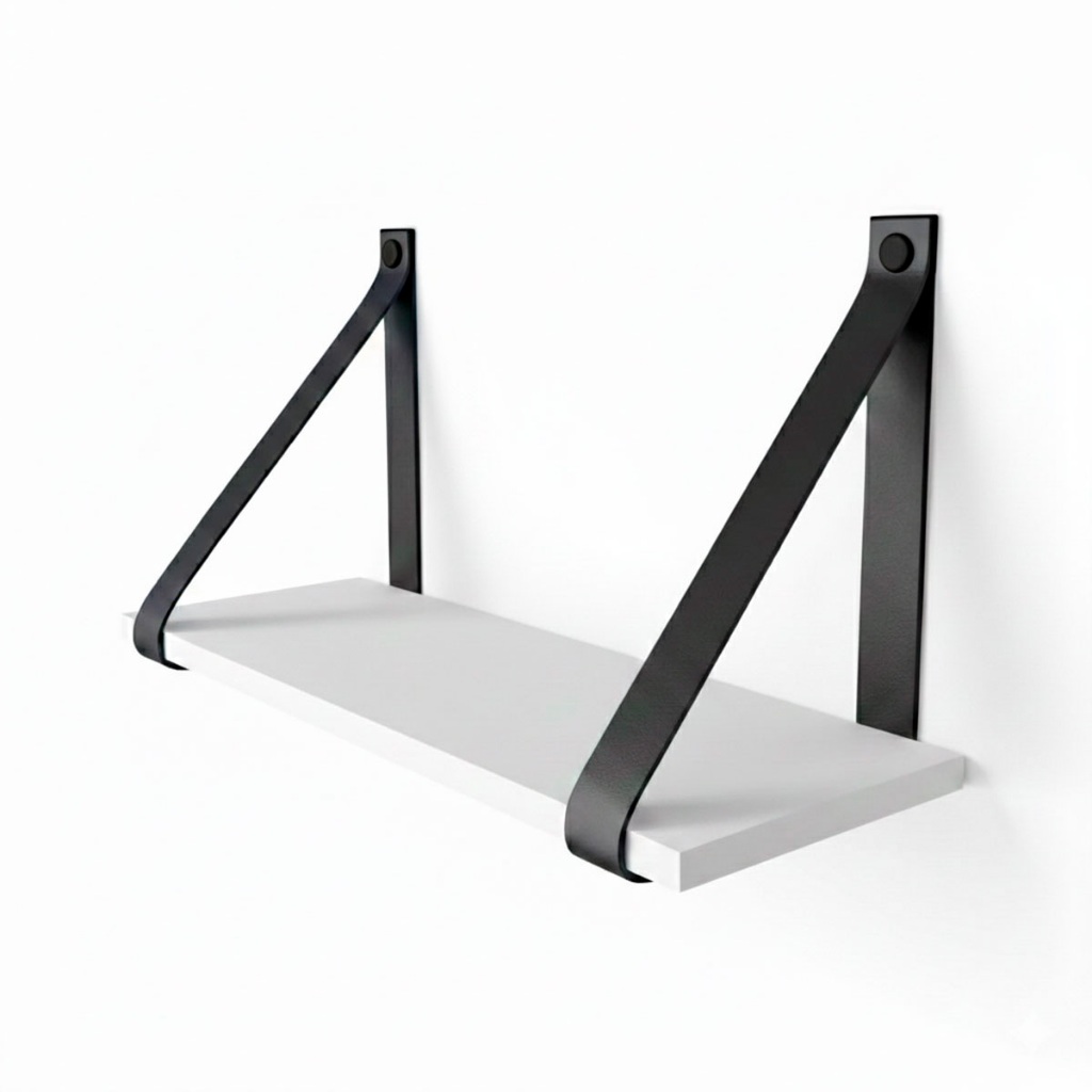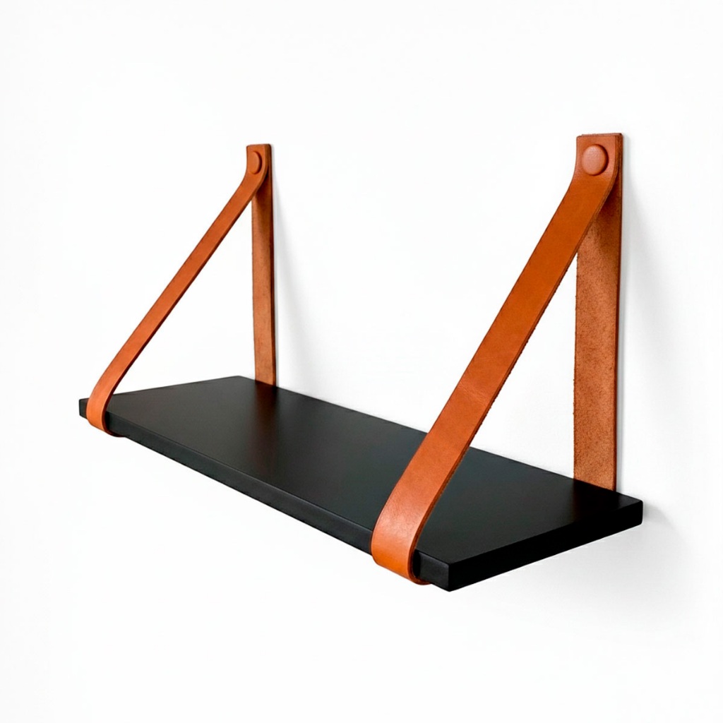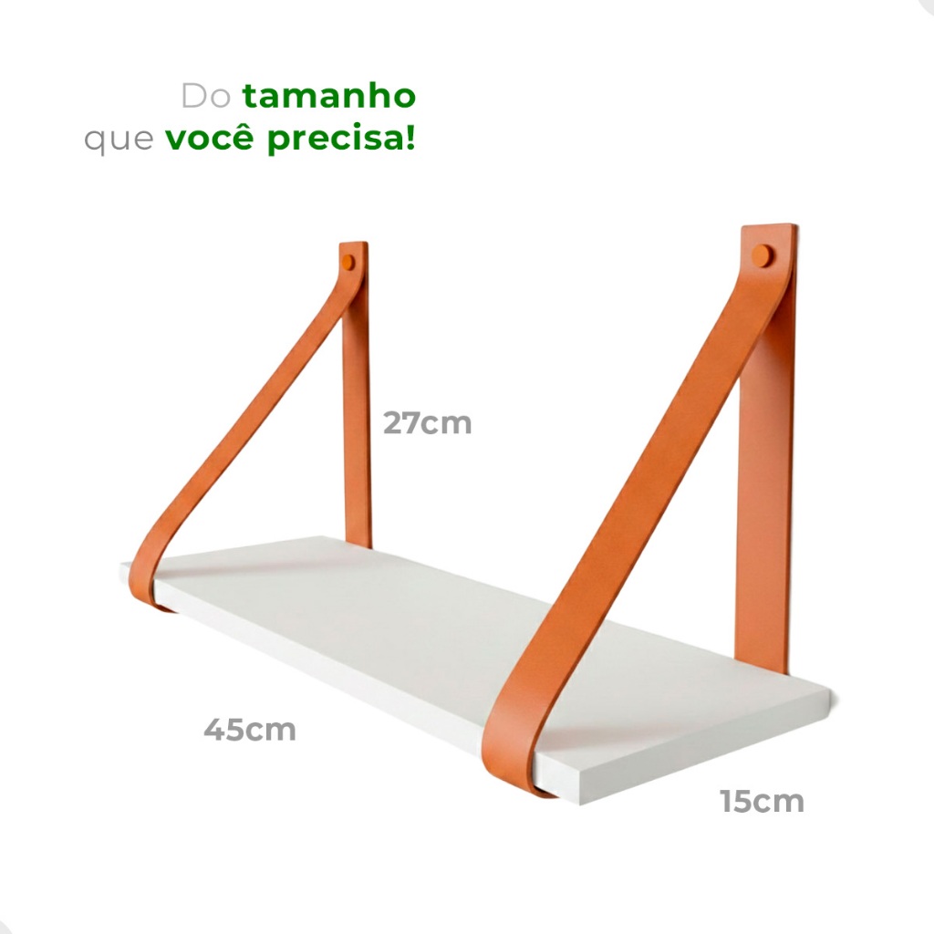 Prateleira Decorativa Suspensa 45x15 Com Alça De Couro