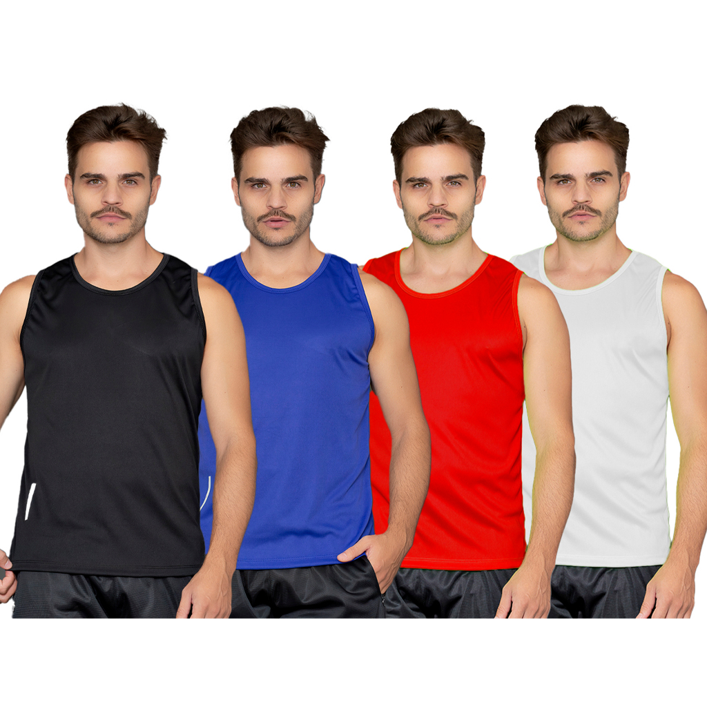 KIT 4 REGATAS MASCULINA DRYFIT LISA BASICA PARA CORRIDA TREINO ACADEMIA VARIAS CORES ESPORTIVA