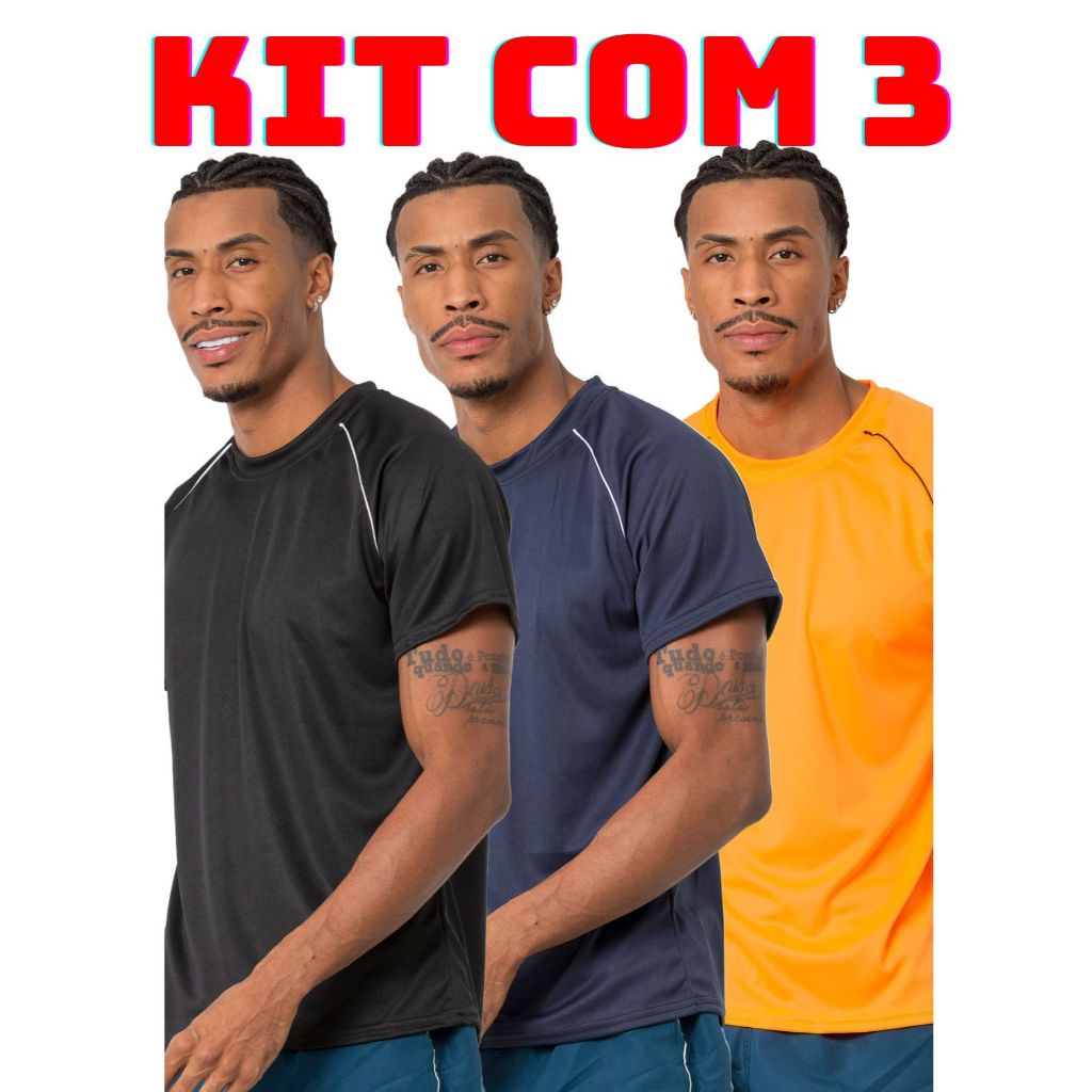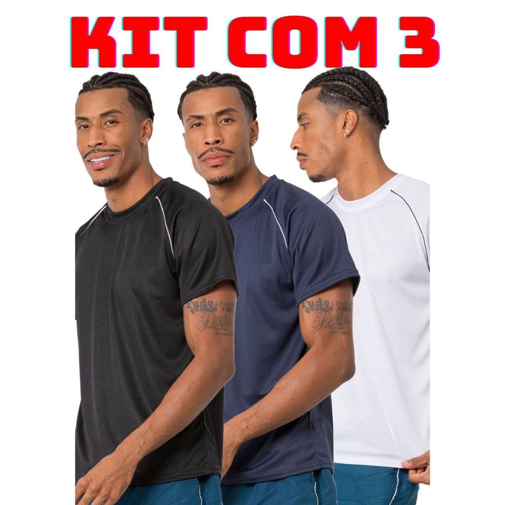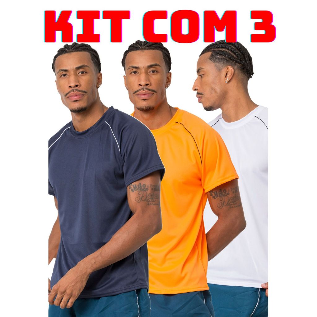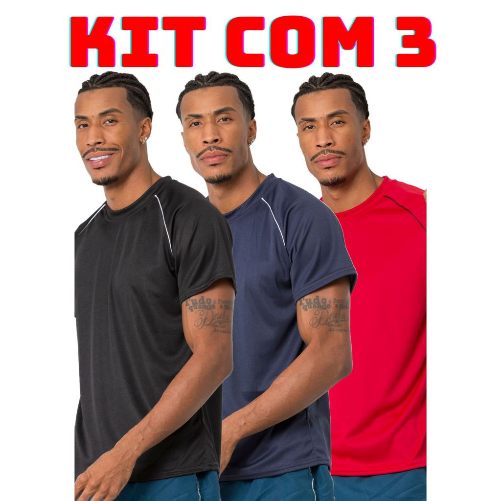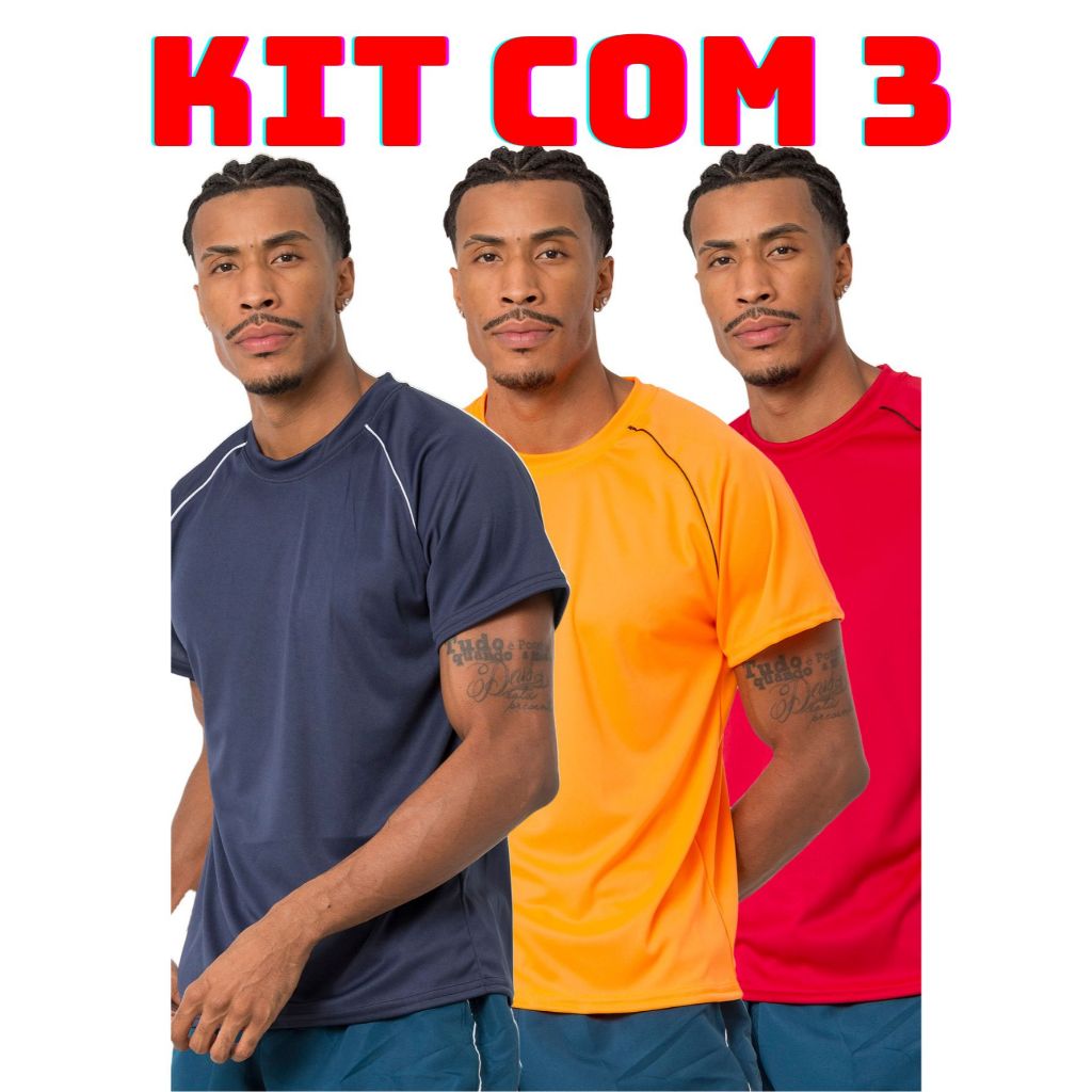 Kit 3 camiseta masculina lisa varias cores leve e confortavel para corrida treino academia casual