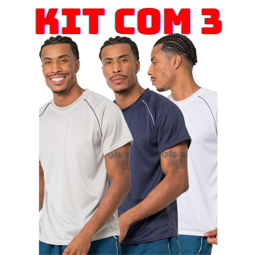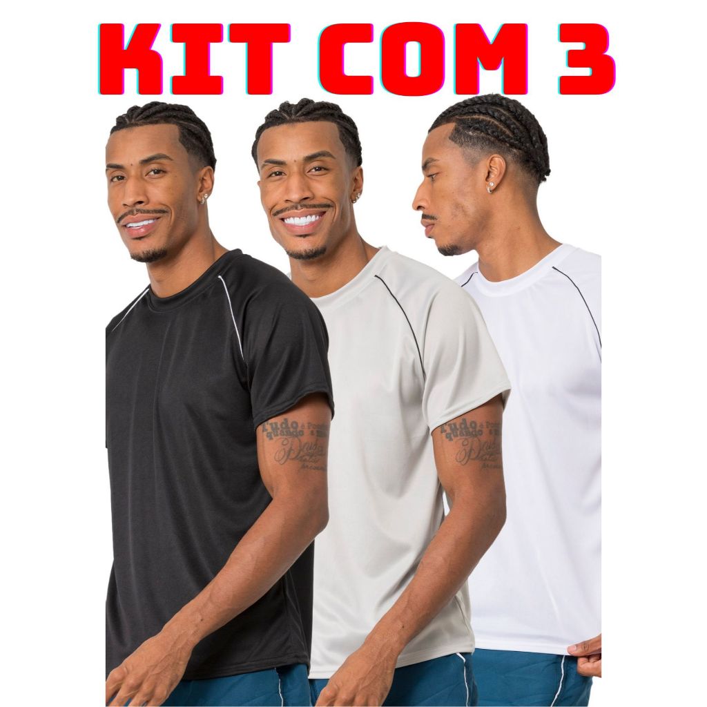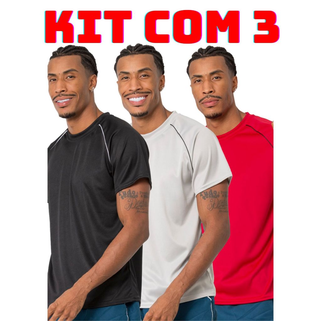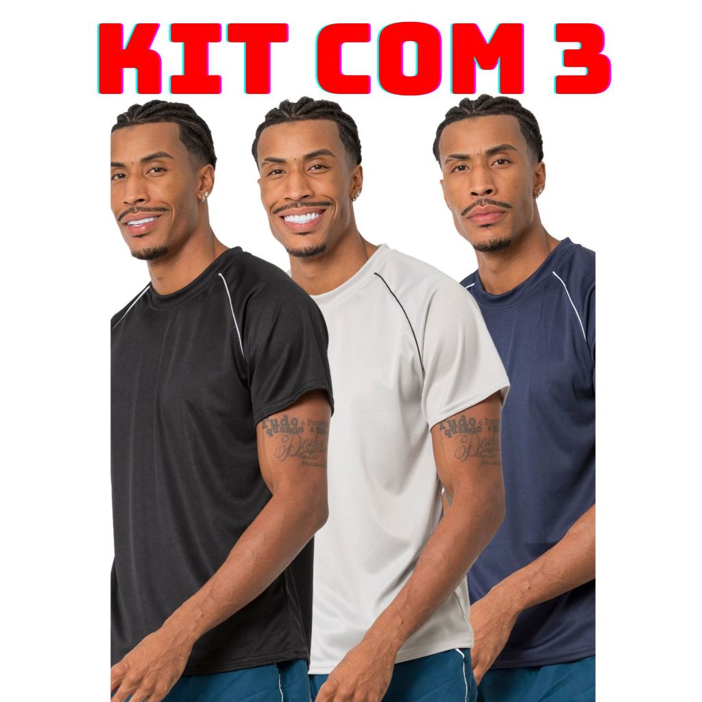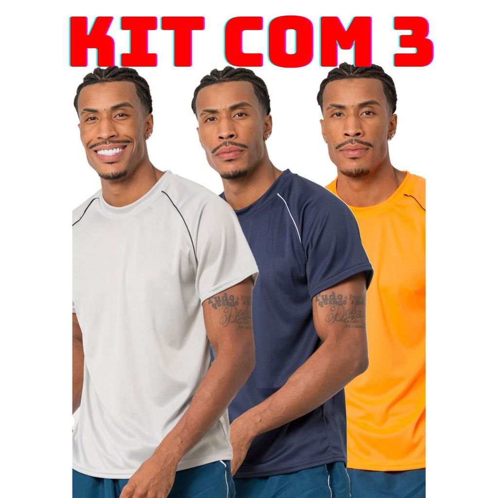 Kit 3 camiseta masculina lisa varias cores leve e confortavel para corrida treino academia casual