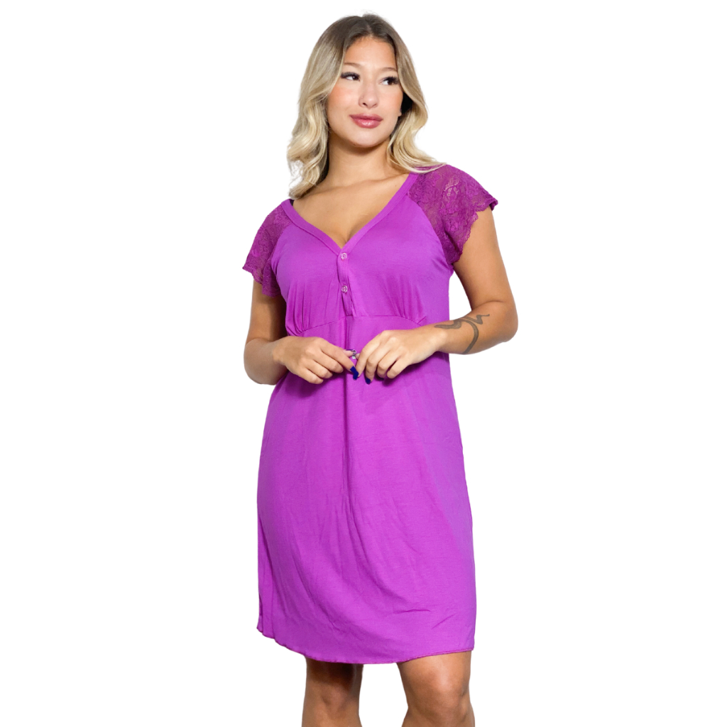 Camisola Feminina em Viscose com Botões Plus Size Amamentação Maternidade Pós Parto