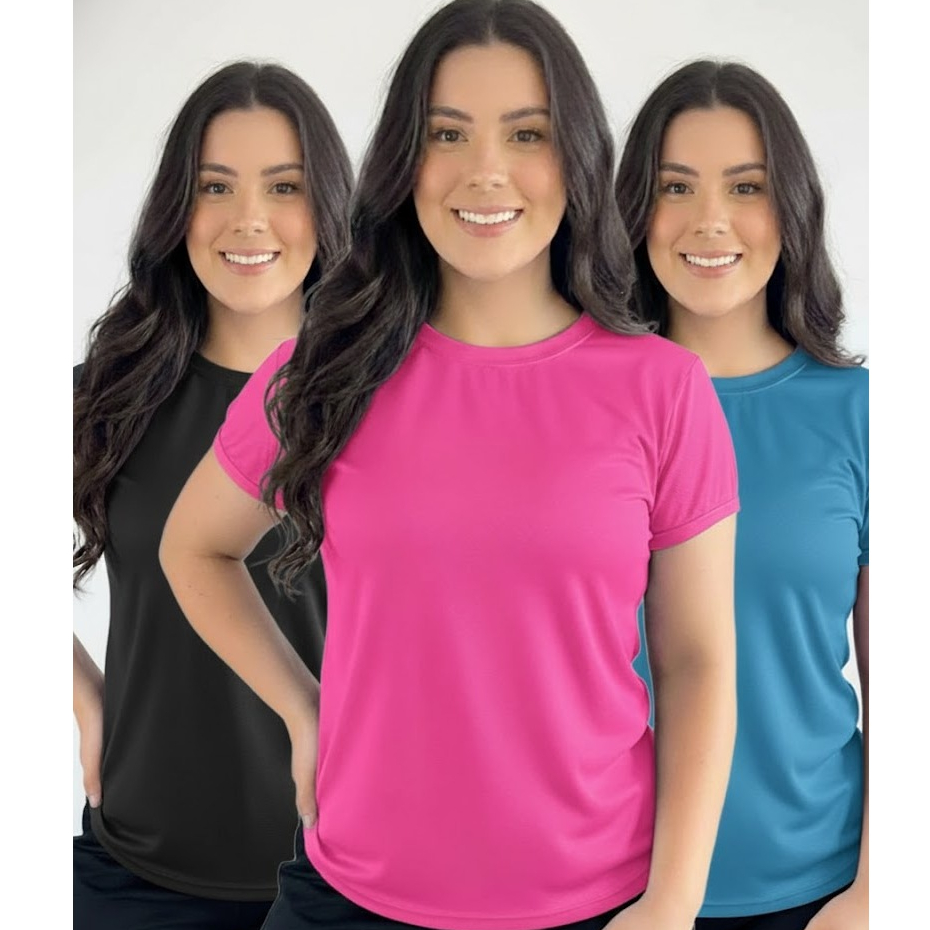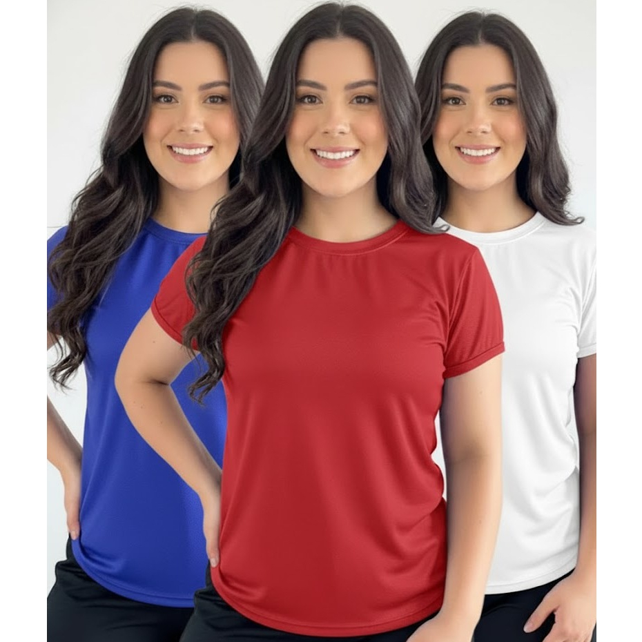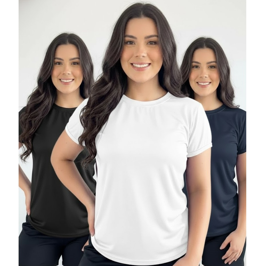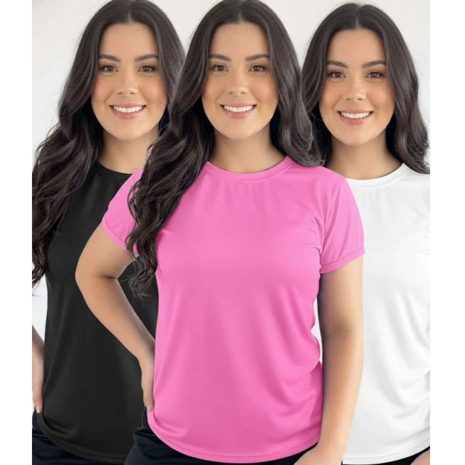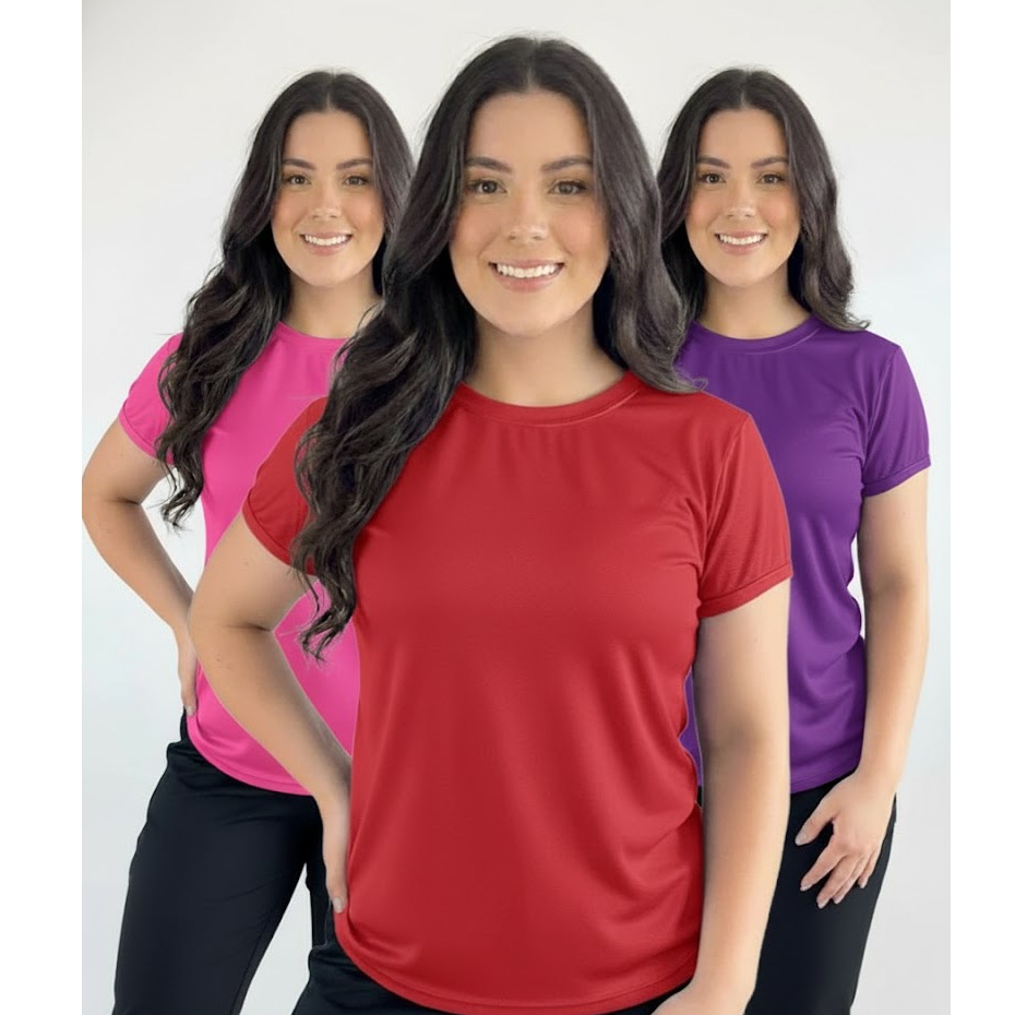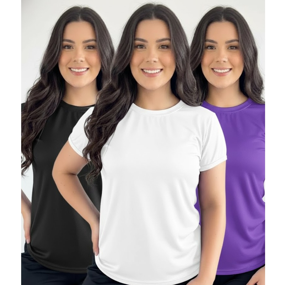 Kit 3 Camiseta Baby Look Moda Fit Feminina Poliéster