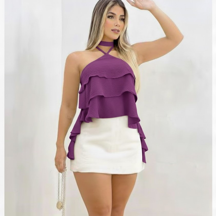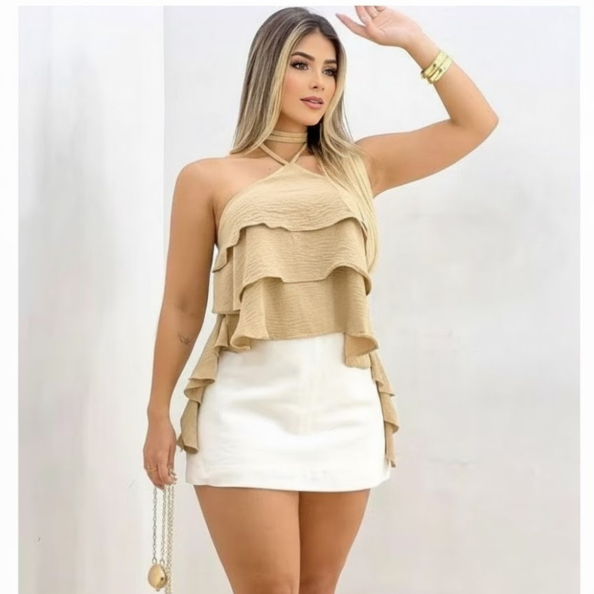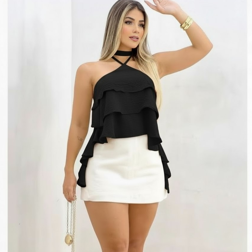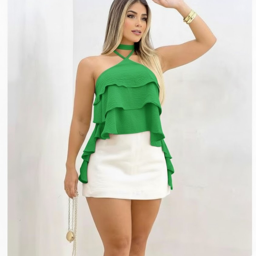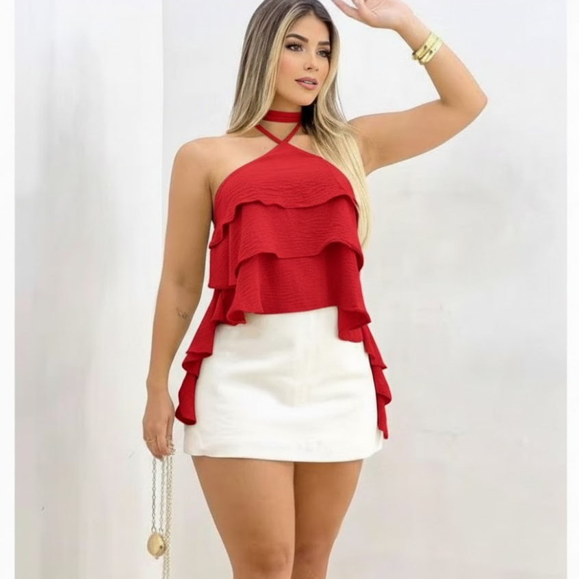 Cropped Bata Blusa Soltinha com Babado em Camadas / Ciganinha