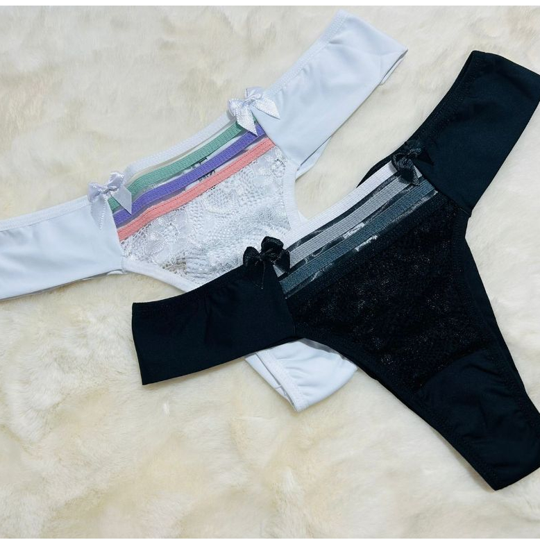 Kit 5 Calcinhas Feminina Microfibra Renda Fio Duplo Lateral Dupla