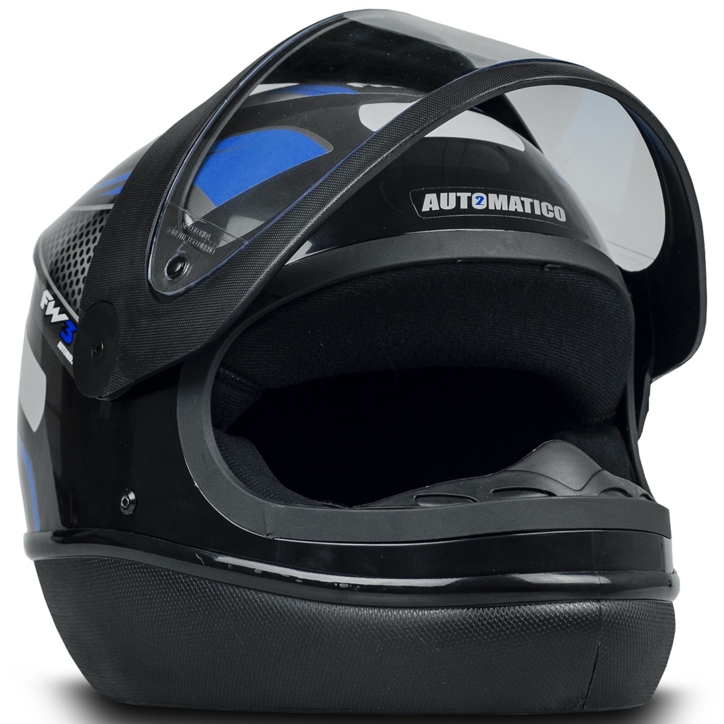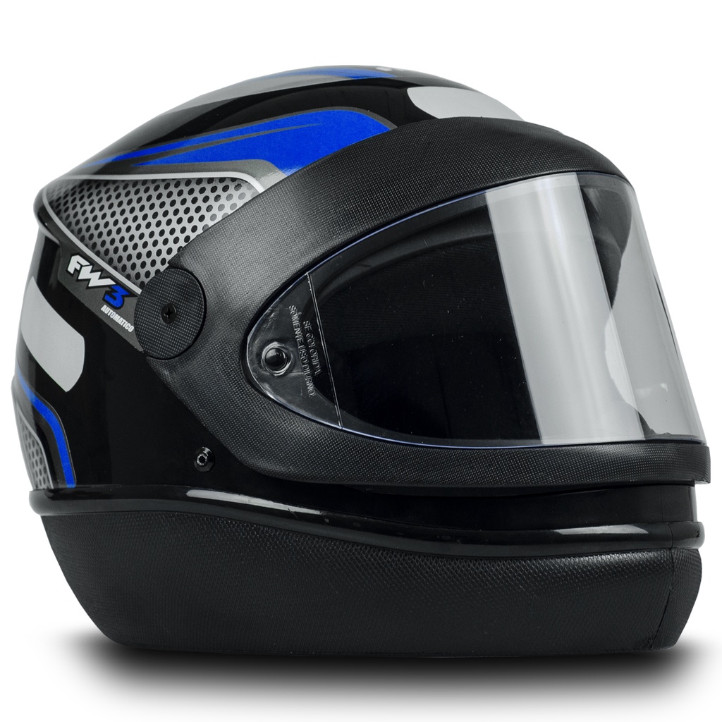 Capacete Fechado Moto Design Espotivo Automatic da FW3 Tamanho 58 Preto/Azul ABS e Super Resistente