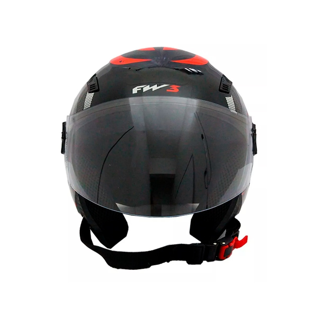 Capacete Moto Aberto X Open Speed Preto Com Vermelho Viseira Cristal Inmetro Tamanho 60 - FW3