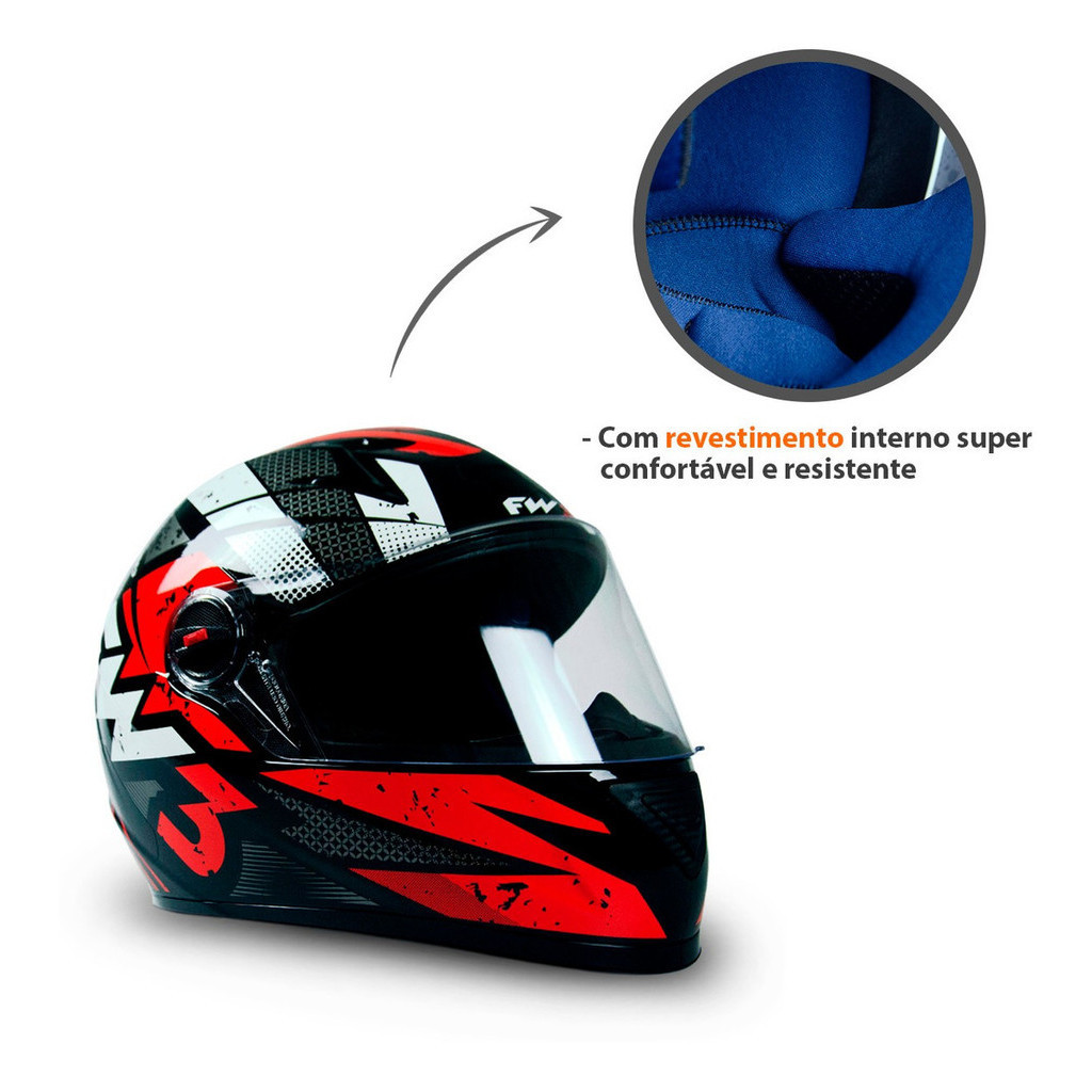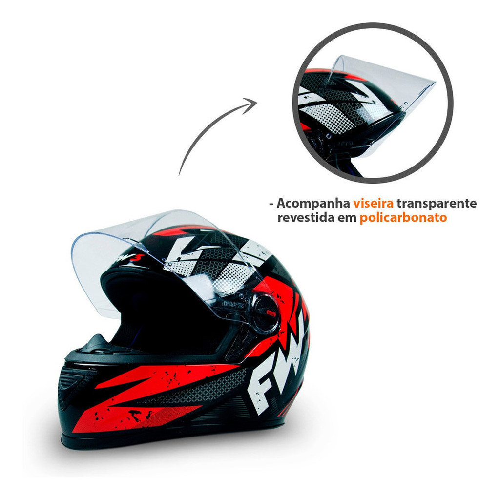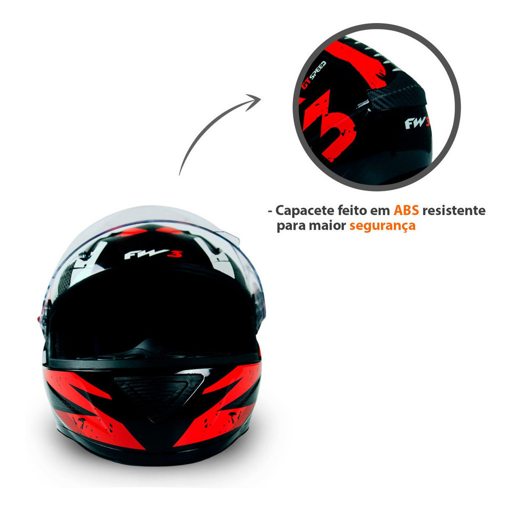 Capacete Moto Fechado GTN Speed Viseira Cristal Banco/Vermelho Inmetro Tamanho 60 - FW3