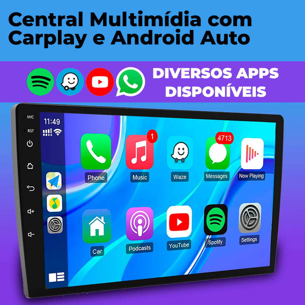 Multimídia 9 Polegadas Hyundai HB20 Hb20S Hb20X 2012 à 2019 Com Carplay Android Auto Bluetooth e Entrada Câmera de Ré