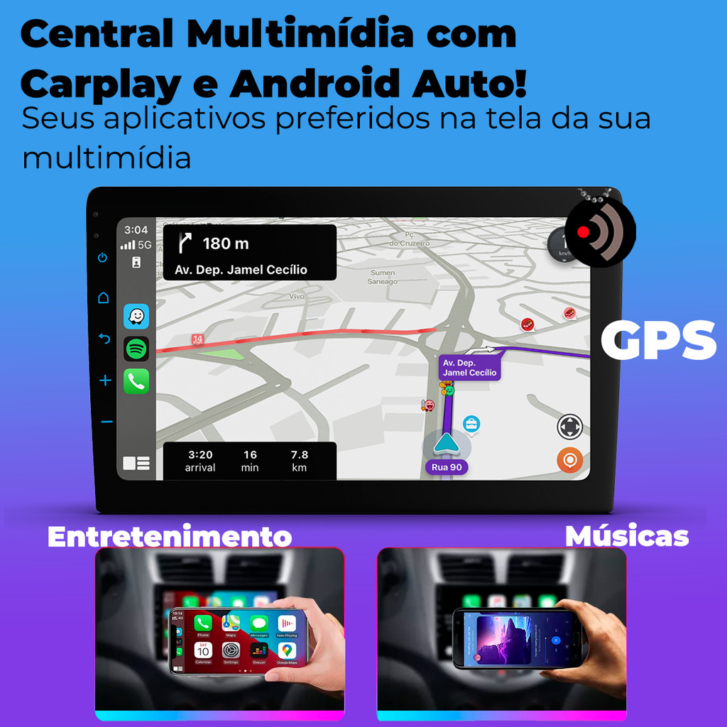 Multimídia 9 Polegadas Onix Prisma Com Carplay Android Auto Bluetooth e Entrada Câmera de Ré