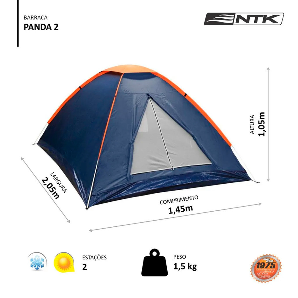 Barraca Camping Panda Iglu 2 Pessoas + Saco de Dormir Freedom Baixas Temperaturas Azul/Laranja - NTK