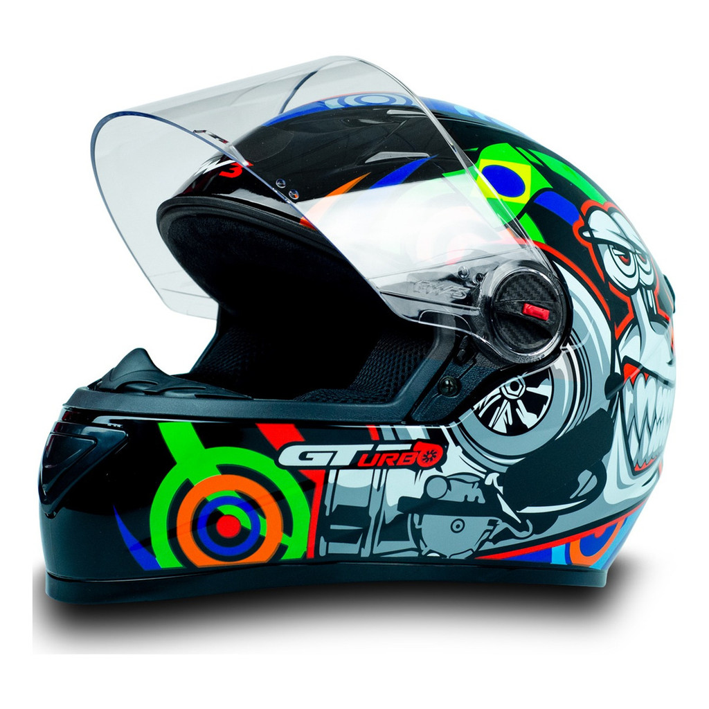 Capacete Para Moto FW3 GT Turbo Fechado Preto Tamanho 56 Com Narigueira Viseira Transparente