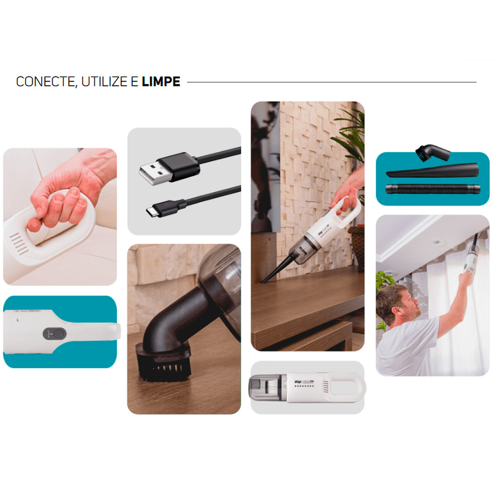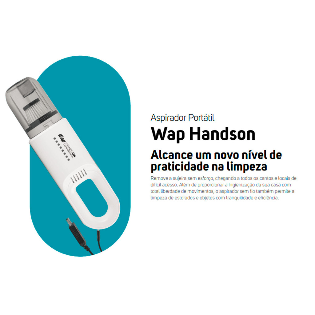 Aspirador de Pó Portátil à Bateria Wap Handson 50W Bivolt Sem Fio Carregamento via Usb Branco - WAP