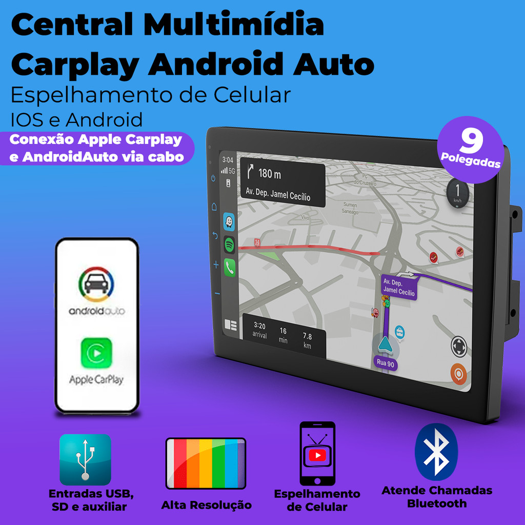 Multimídia 9 Polegadas Onix Prisma Com Carplay Android Auto Bluetooth Com Câmera de Ré