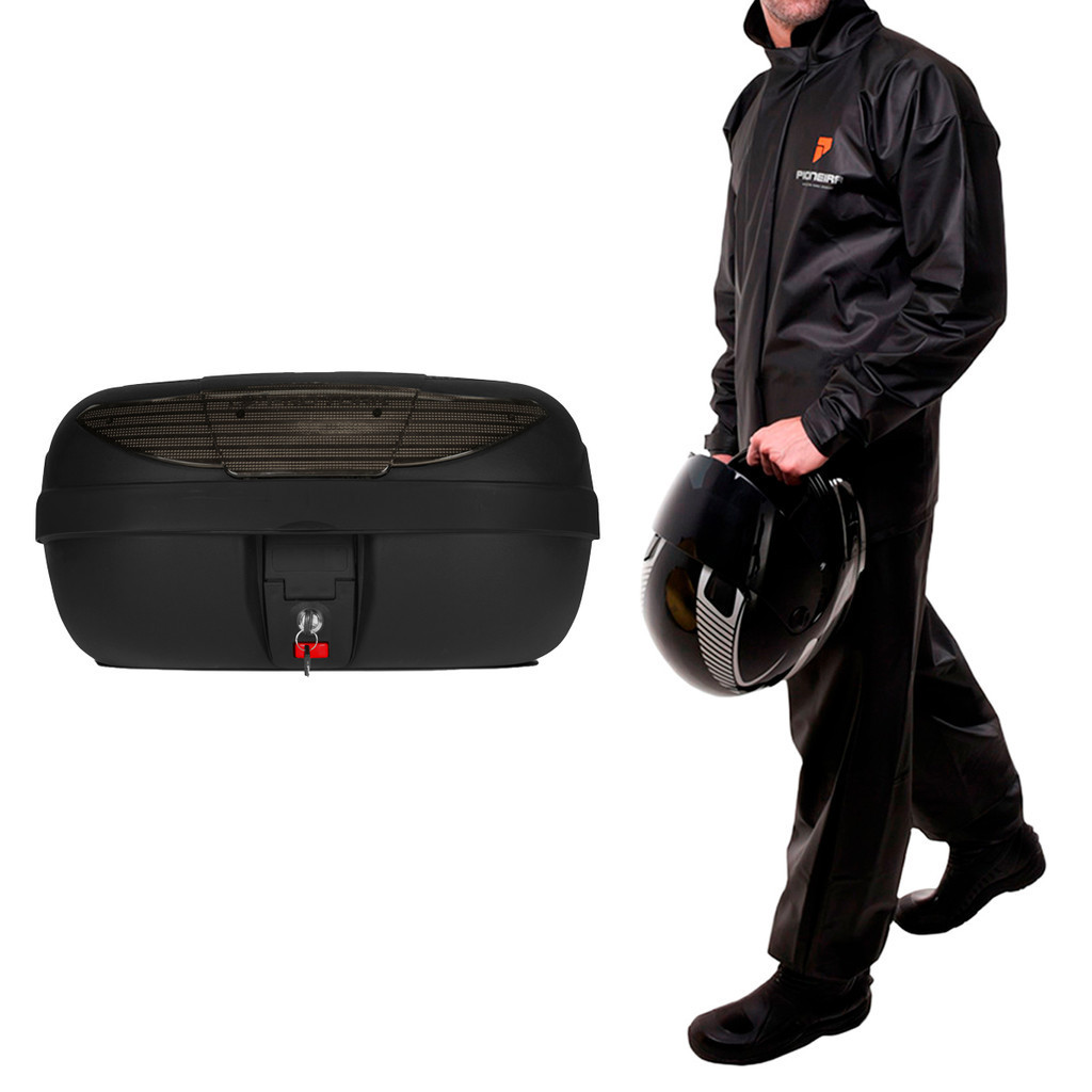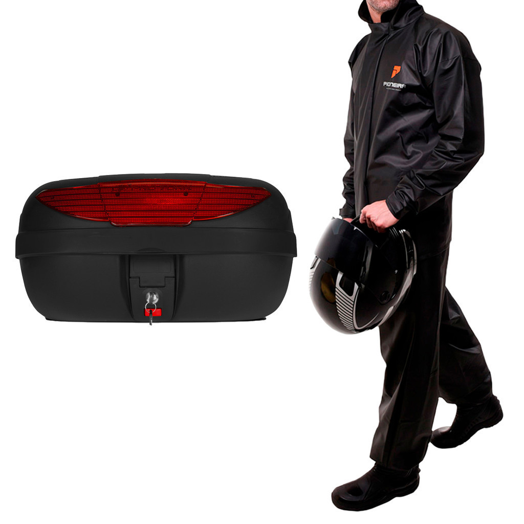 Baú Bauleto Moto Pro Tork Smartbox 2 45 Litros Pro Tork + Capa de Chuva Combate Com Gola Pioneira